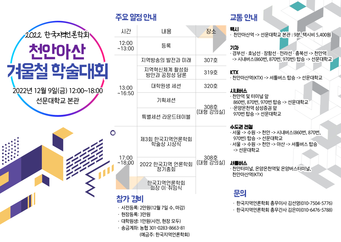 □ 한국지역언론학회 2022년 천안아산 겨울철 정기학술대회 개요