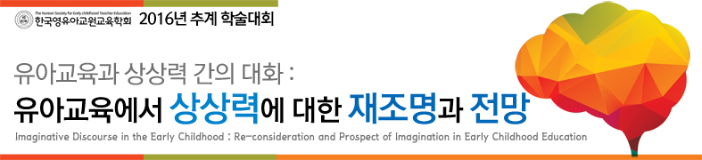 한국영유아교원교육학회 회원님께 먼저 감사의 말씀을 올립니다 가을이 익어가는 시점에 개인 일정을 마다하시고 ‘유아교육과 상상력 간의 대화: 유아교육에서 상상력에 대한 재조명과 전망’ 이라는 주제로 개최된 추계학술대회에 많은 관심과 호응을 해주셔서 감사드립니다. 유아교육 현장에서 유아들과 상호작용을 하다보면 유아들의 기발한 생각을 접하는 경우가 많은데 이번 추계학술대회를 통해 그러한 상황들을 우리가 어떻게 다루어야 하는지에 대해 충분히 생각할 수 있었습니다. 유아들을 가르친다는 것 안에는 유아들의 마음을 먼저 읽어야 함을 생각할 수 있었고 유아들과 상호작용을 하는 우리들의 마음이 먼저 열려있어야 함을 생각할 수 있었습니다. 이를 바탕으로 유아들의 상상력을 잘 가꾸어서 미래의 한국을 보다 다양하게 창조하여 만들어 나갈 수 있는 기회로 거듭나기를 소망해봅니다. 학술대회를 감당하기에 충분하지 않은 장소이고 여건이지만 오시는 여러분들께서 불편하지 않도록 최대한 노력했다고 자부합니다. 그럼에도 불구하고 혹시 불편한 점이 있었다면 넓으신 아량으로 이해해주시면 감사하겠습니다. 다시 한 번 추계학술대회를 빛내주신 회원 여러분들께 진심으로 감사를 드리며 2017년 1월 14일과 15일, 21일, 22일에 개최되는 놀이상담사 연수에서 회원 여러분들을 만나 뵙도록 하겠습니다. 회원 여러분들의 가정과 일터에 늘 행복과 경사가 넘치기를 진심으로 바라겠습니다. 감사합니다. 2016. 10. 31. 한국영유아교원교육학회장 김 희 태 올림
