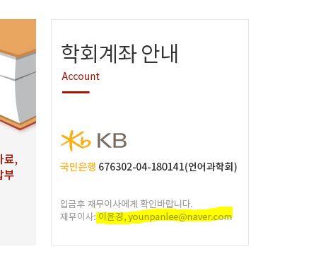 - 학회 통장 : 국민은행 676302-04-180141 언어과학회