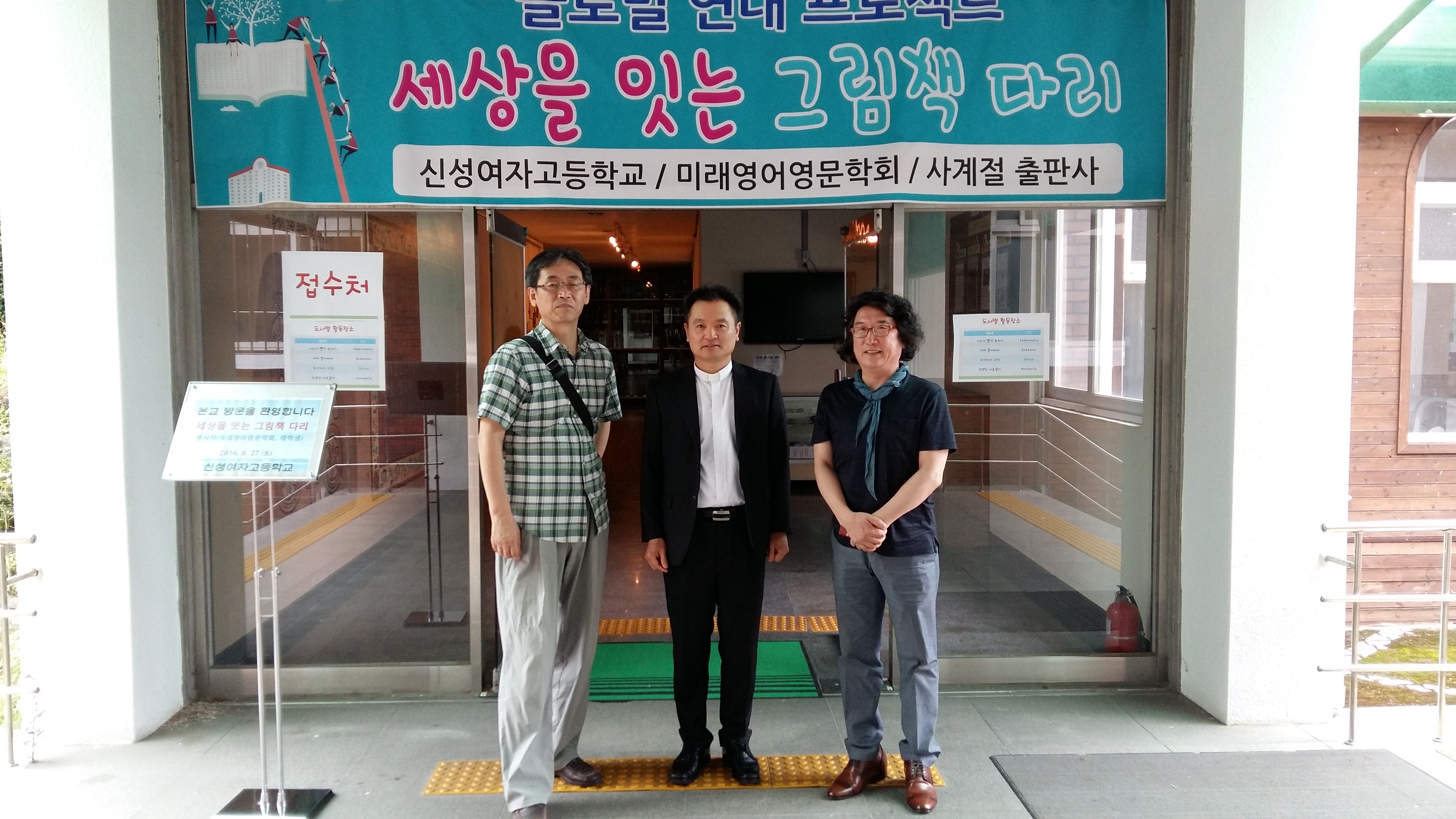 지난 8월 12일에 제주 신성여자고등학교(교장 송동림)와 체결한 글로벌 연대 프로젝트 관련 업무협약의 일환으로 8월 27일(토) 신성여고에서 개최된 '세상을 잇는 그림책 다리' 행사에 미래영어영문학회 회원 등이 참여하여 번역봉사를 실시하였습니다.