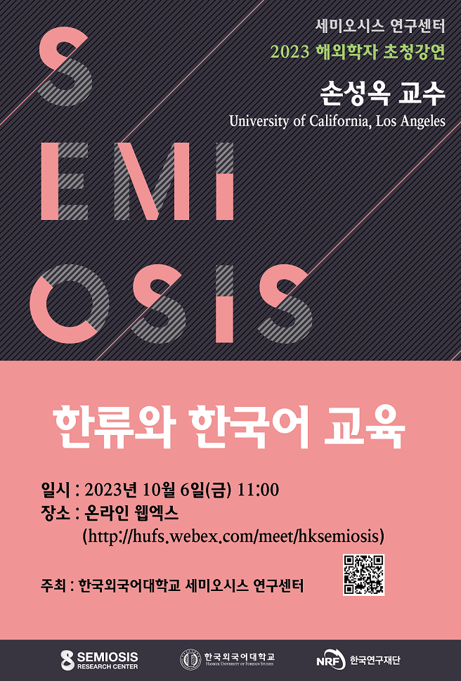 한국외국어대학교 세미오시스 연구센터 2023 해외학자 초청강연 개최 안내