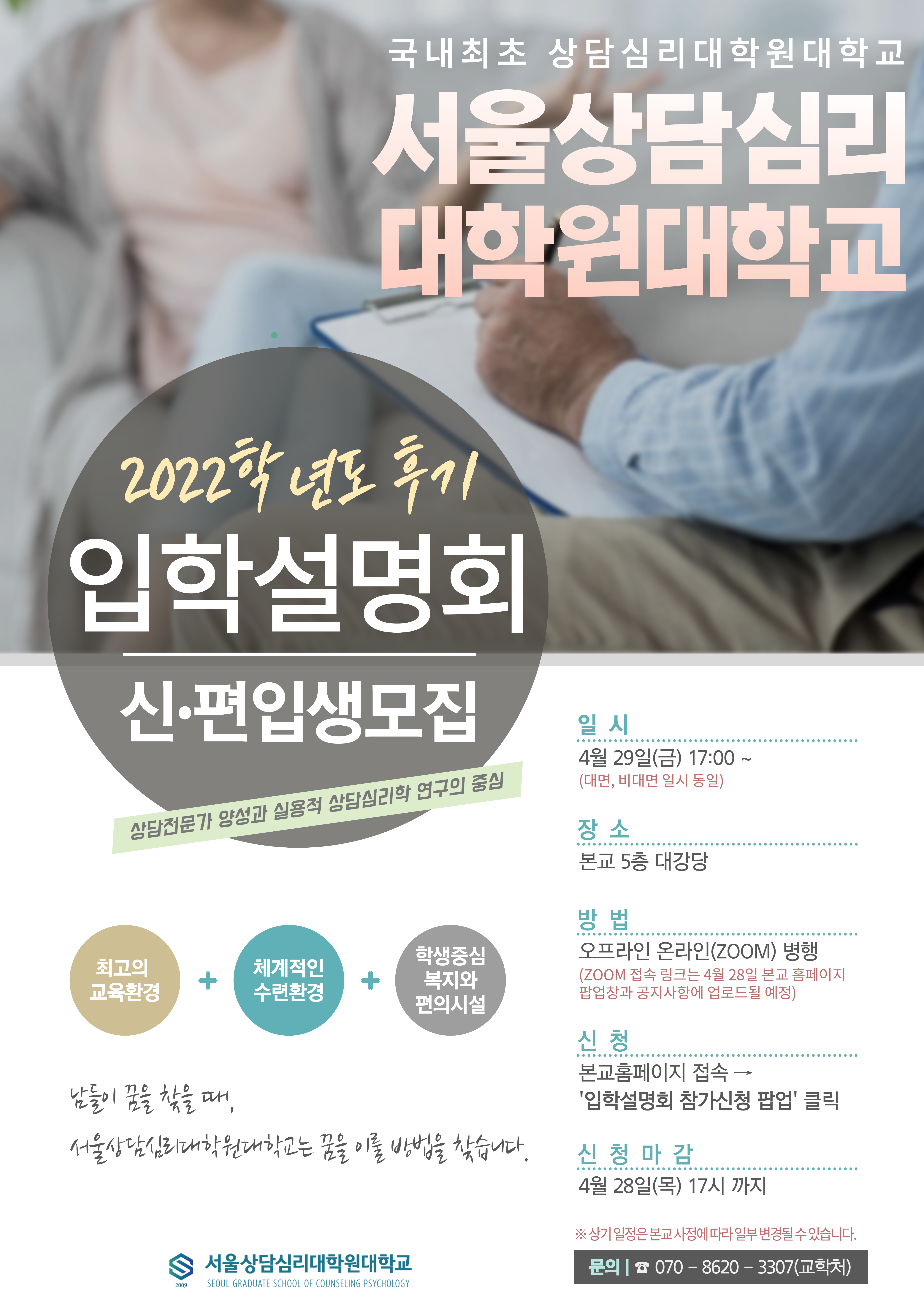 [서울상담심리대학원대학교] 2022학년도 후기 입학설명회 개최