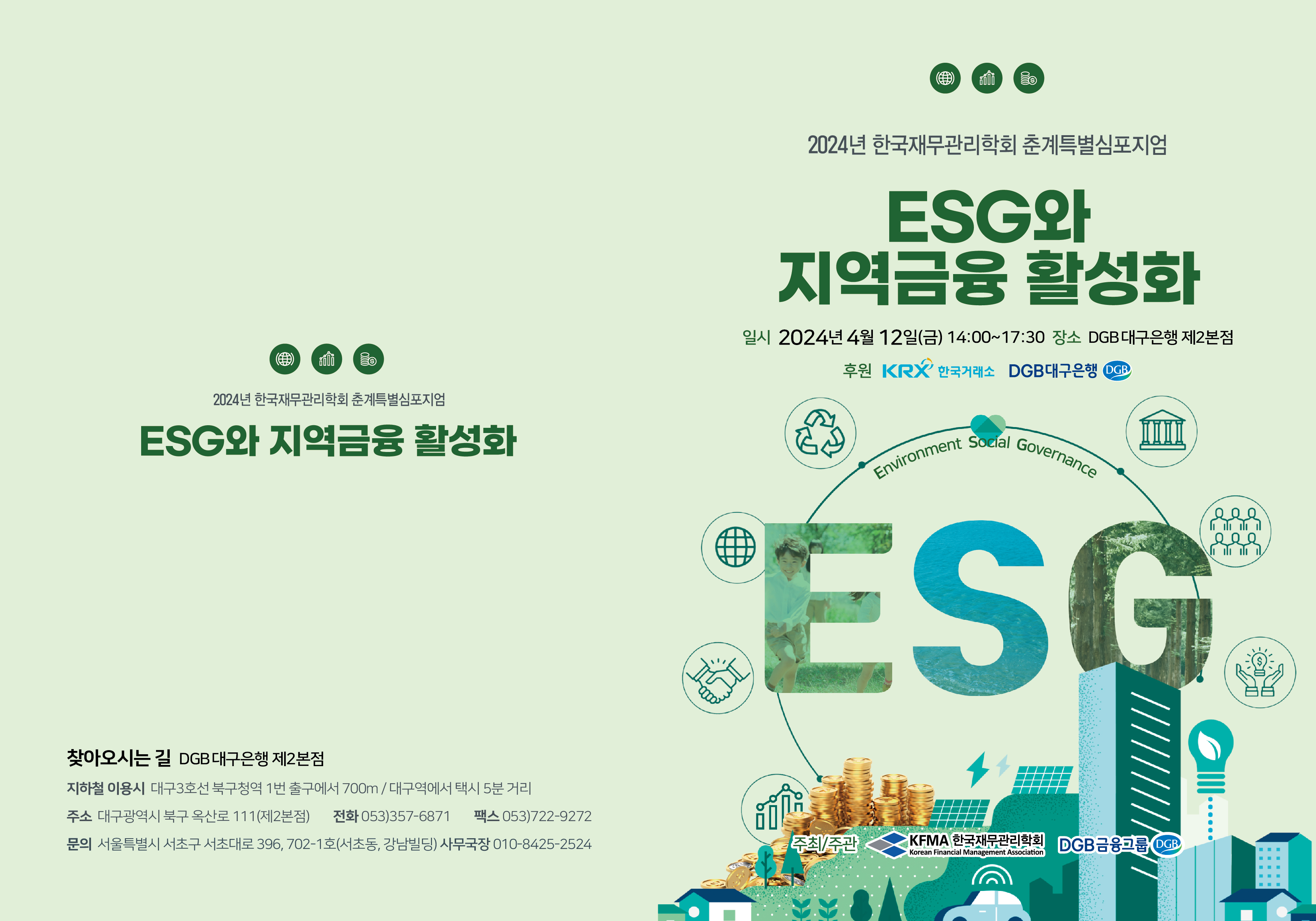 지속 가능한 발전과 지역 경제의 성장은 한국 경제의 미래를 결정하는 중요한 화두입니다. 이런 맥락에서 'ESG 지역금융 활성화'라는 주제로 열리는 이번 특별심포지엄은 한국재무관리학회와 DGB대구은행이 공동으로 주최하는 매우 의미 있는 행사입니다.