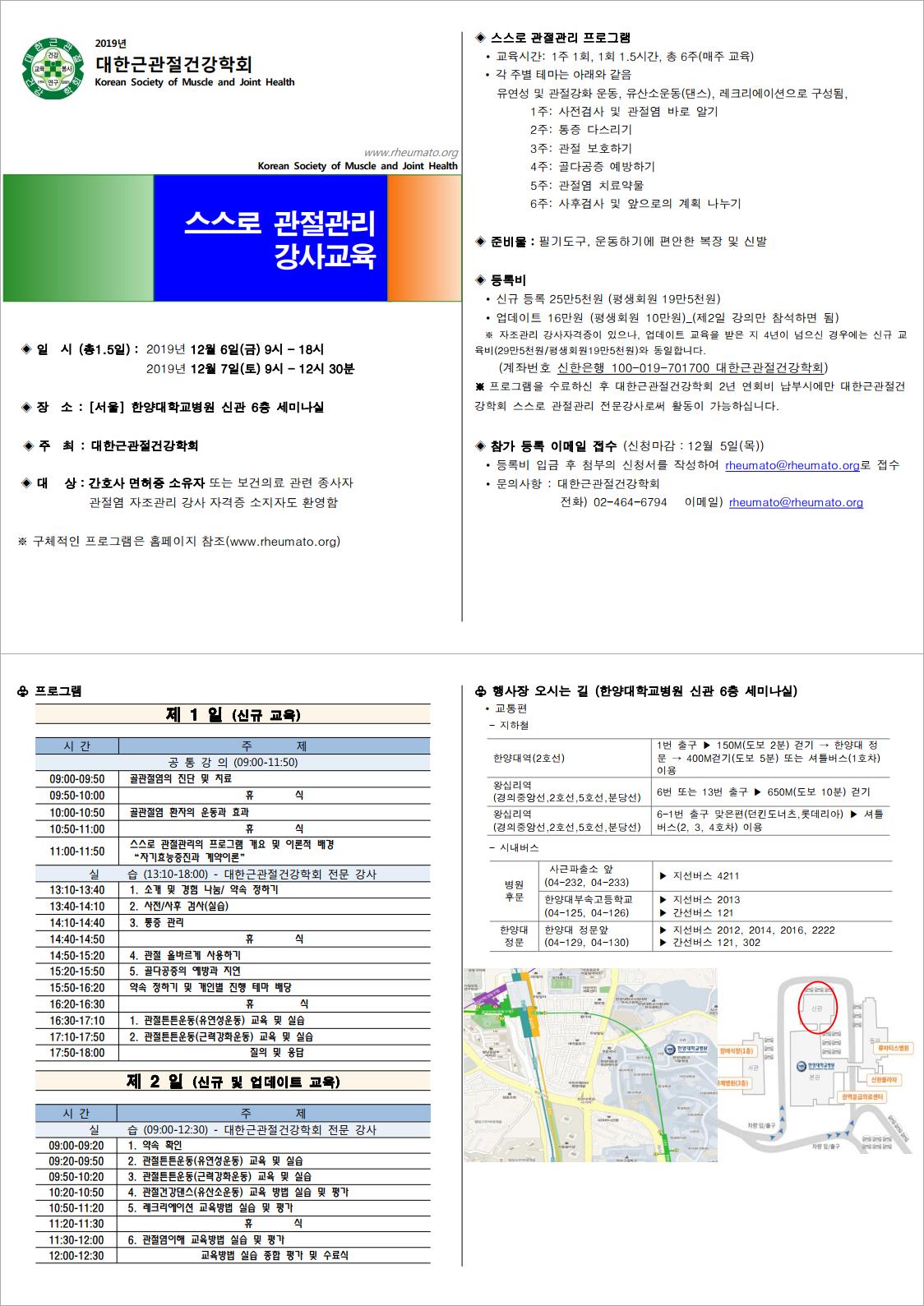 (첨부)스스로관절관리_강사교육_프로그램(서울_한양대병원_2019년12월6~7일).hwp