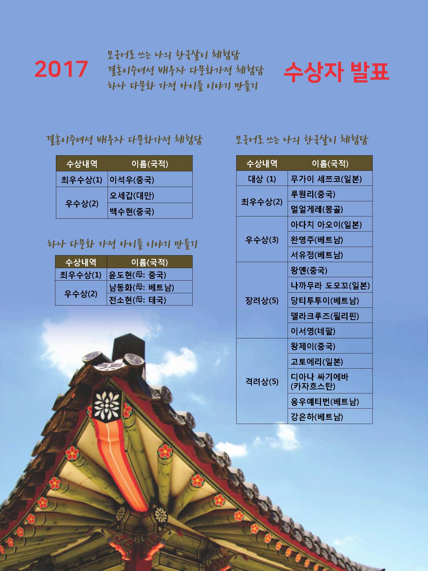2017 한국살이 및 다문화가정 체험담 수상자 발표