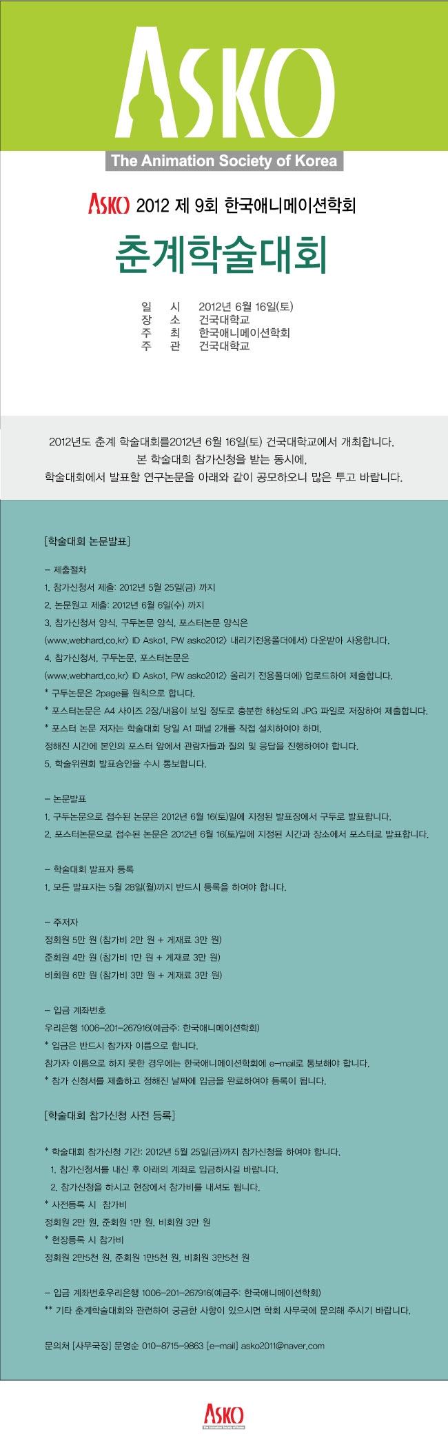2012 제9회 춘계학술대회 논문접수를 다음과 같이 받고 있습니다.