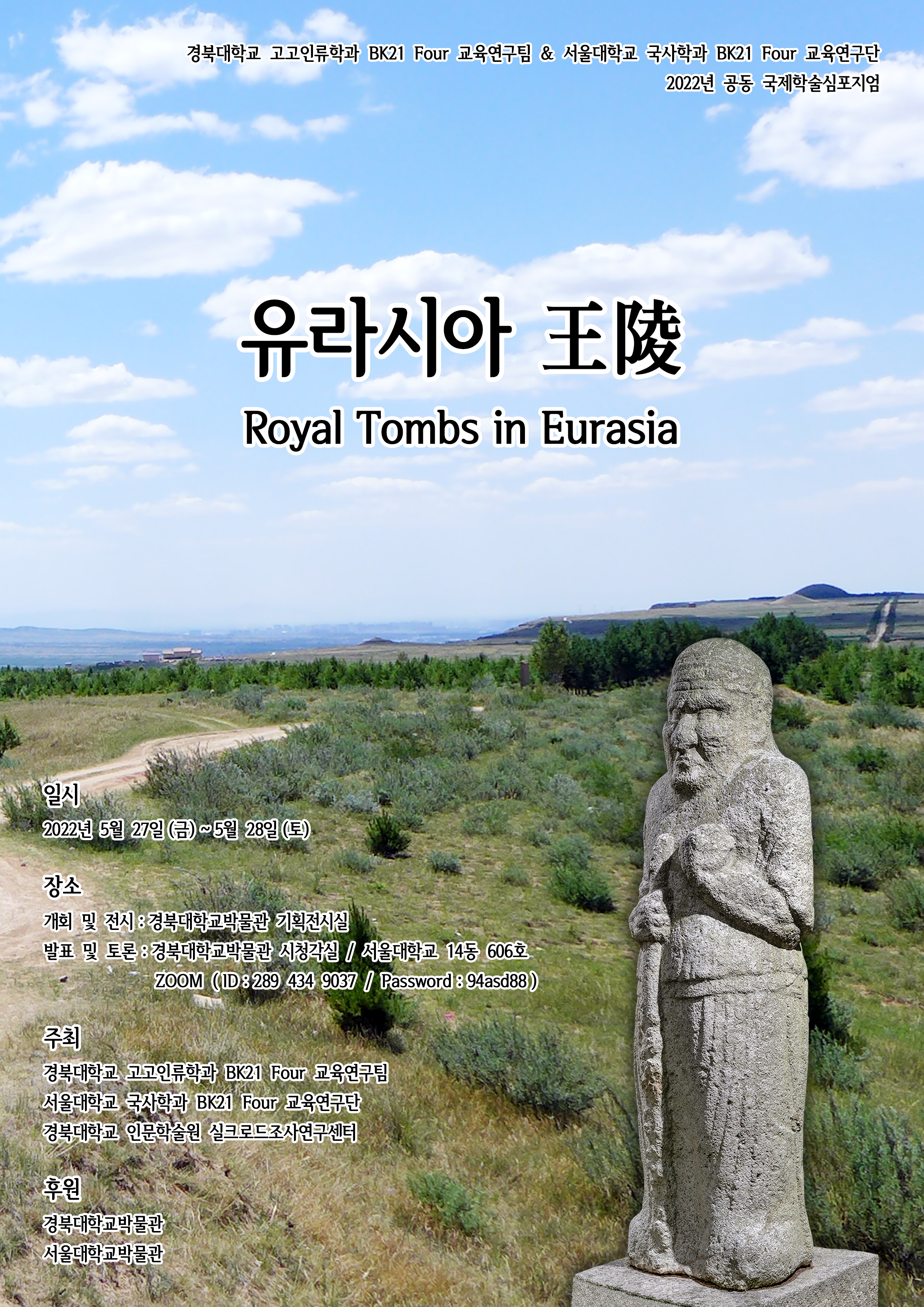 경북대학교 고고인류학과 BK21 Four 교육연구팀과 서울대학교 국사학과 BK21 Four 교육연구단이 유라시아 王陵(Royal Tombs in Eurasia)이라는 주제로 국제학술심포지엄을 개최합니다.