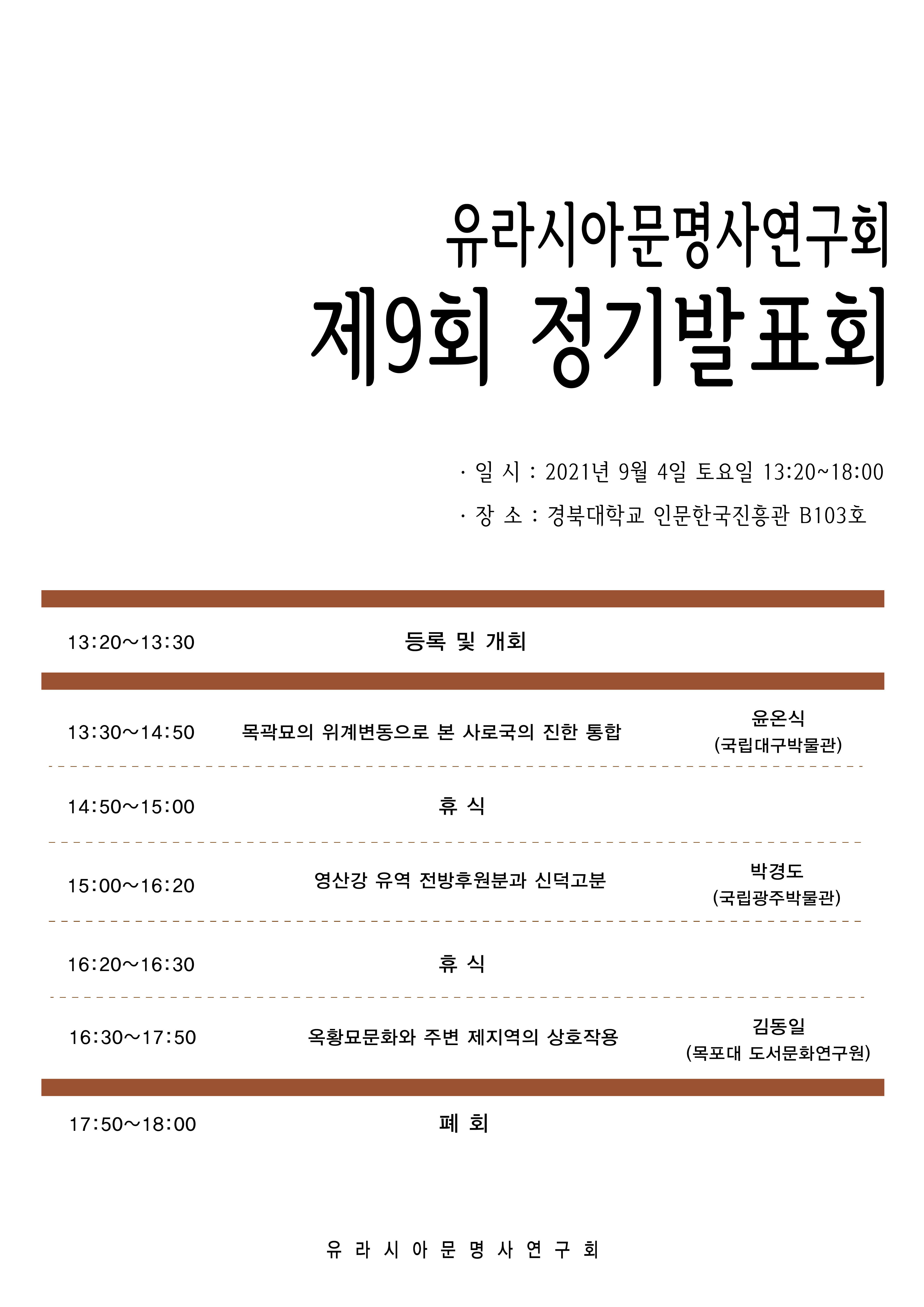 유라시아문명사연구회 제9회 정기발표회를 개최하고자합니다.