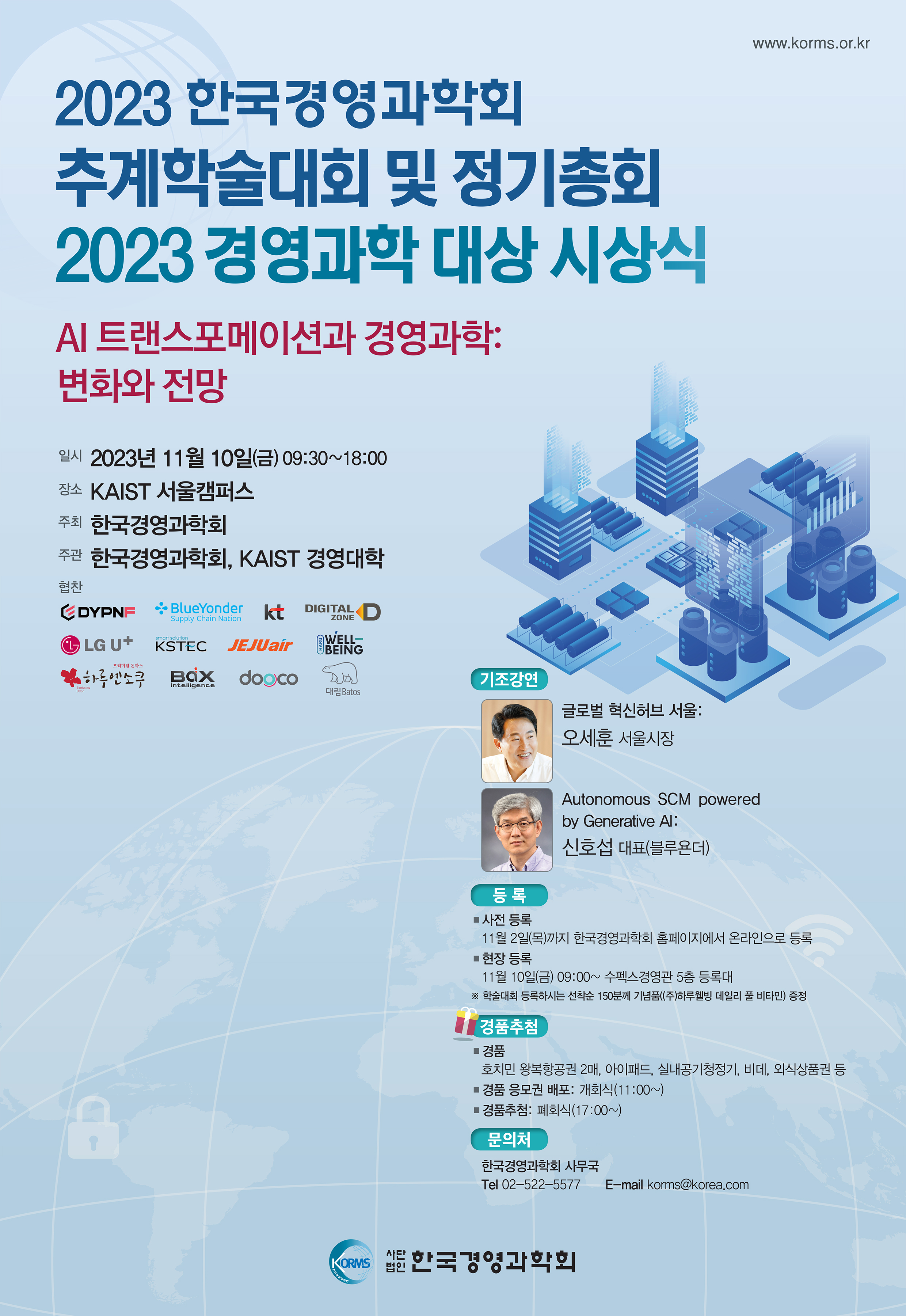 2023 한국경영과학회 추계학술대회 초대합니다.