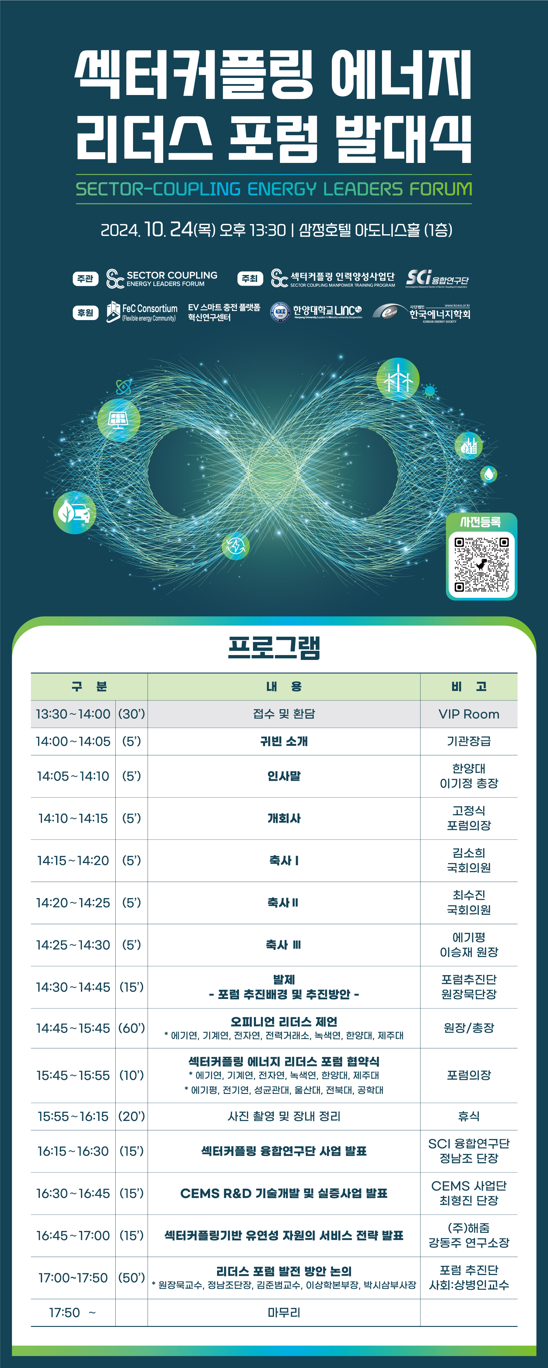 산학연 네트워크 및 연구역량 강화를 위한 전문가 협업 체계인 섹터커플링 에너지 리더스 포럼(SELF) 발대식이 개최됩니다.