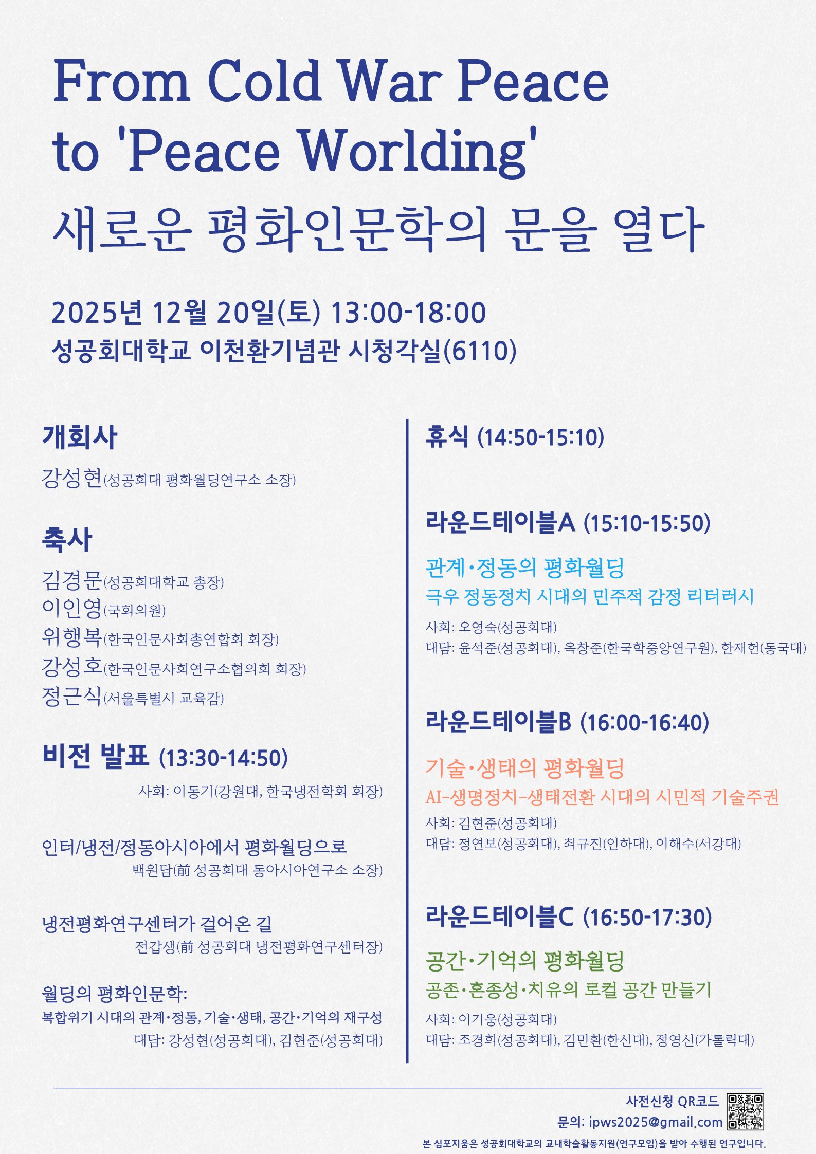 주최: 성공회대학교 평화월딩연구소(IPWS)