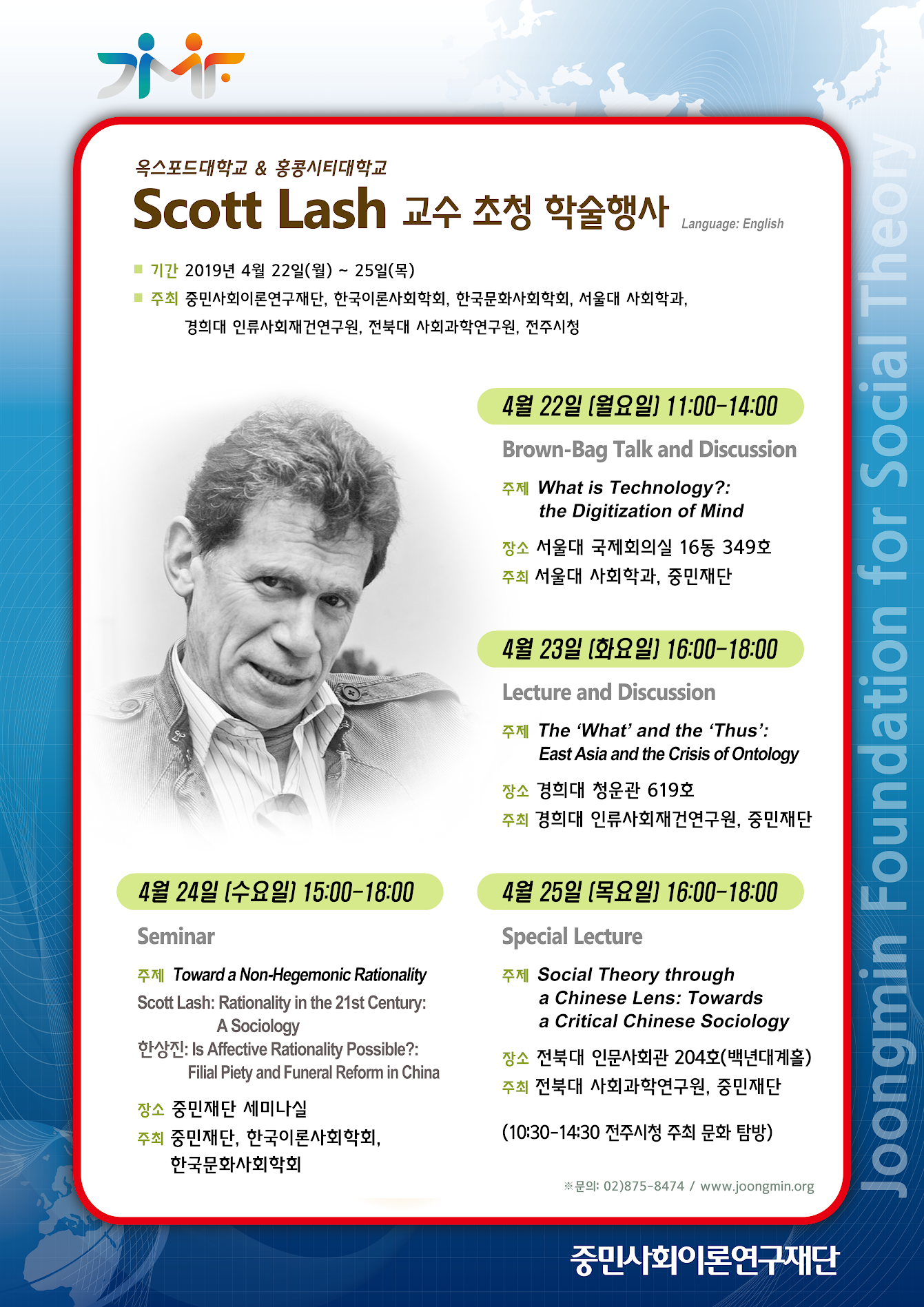 중민사회이론재단(이사장 한상진초청 Scott Lash 교수 초청 학술행사를 안내해 드립니다.
