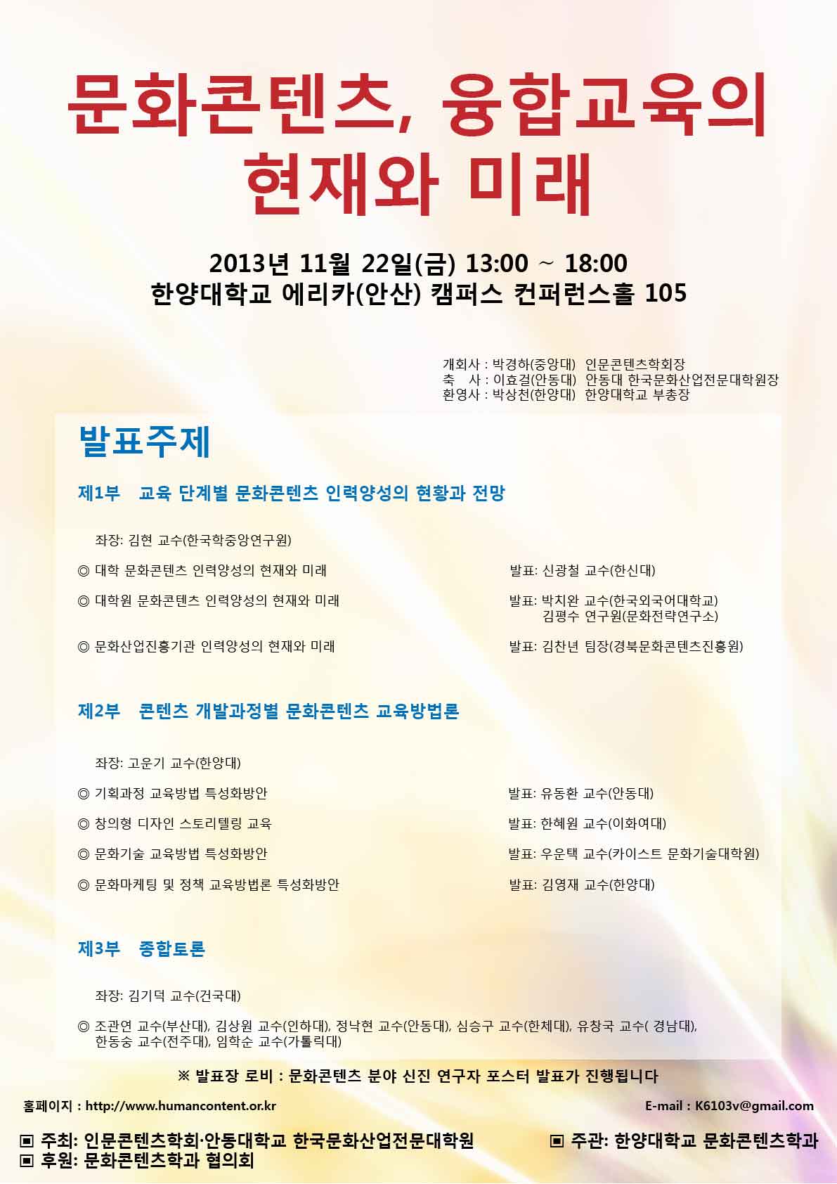 2013년 인문콘텐츠학회 전국학술대회가 소기의 성과를 거둘 수 있도록 많은 관심과 격려를 부탁드립니다. 감사합니다.