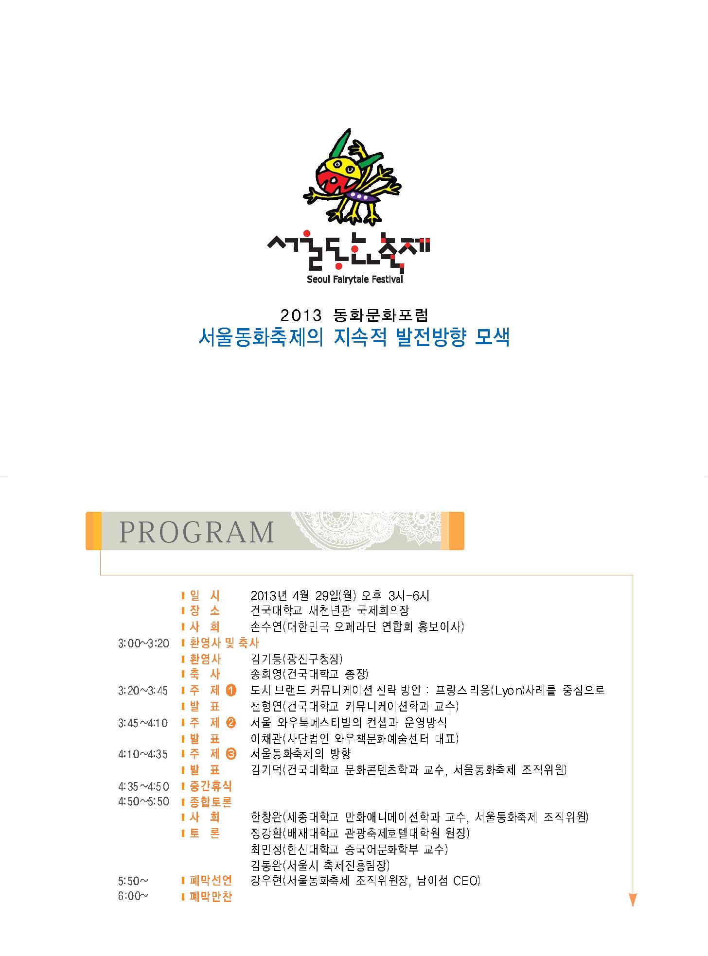 다양한 분야의 콘텐츠 전문가들이 함께하는 <제2회 서울동화문화포럼: 서울동화축제의 지속적 발전방향 모색>을 안내해드립니다. 참여하셔서 좋은 정보와 아이디어 얻어 가시길 바랍니다. 감사합니다.