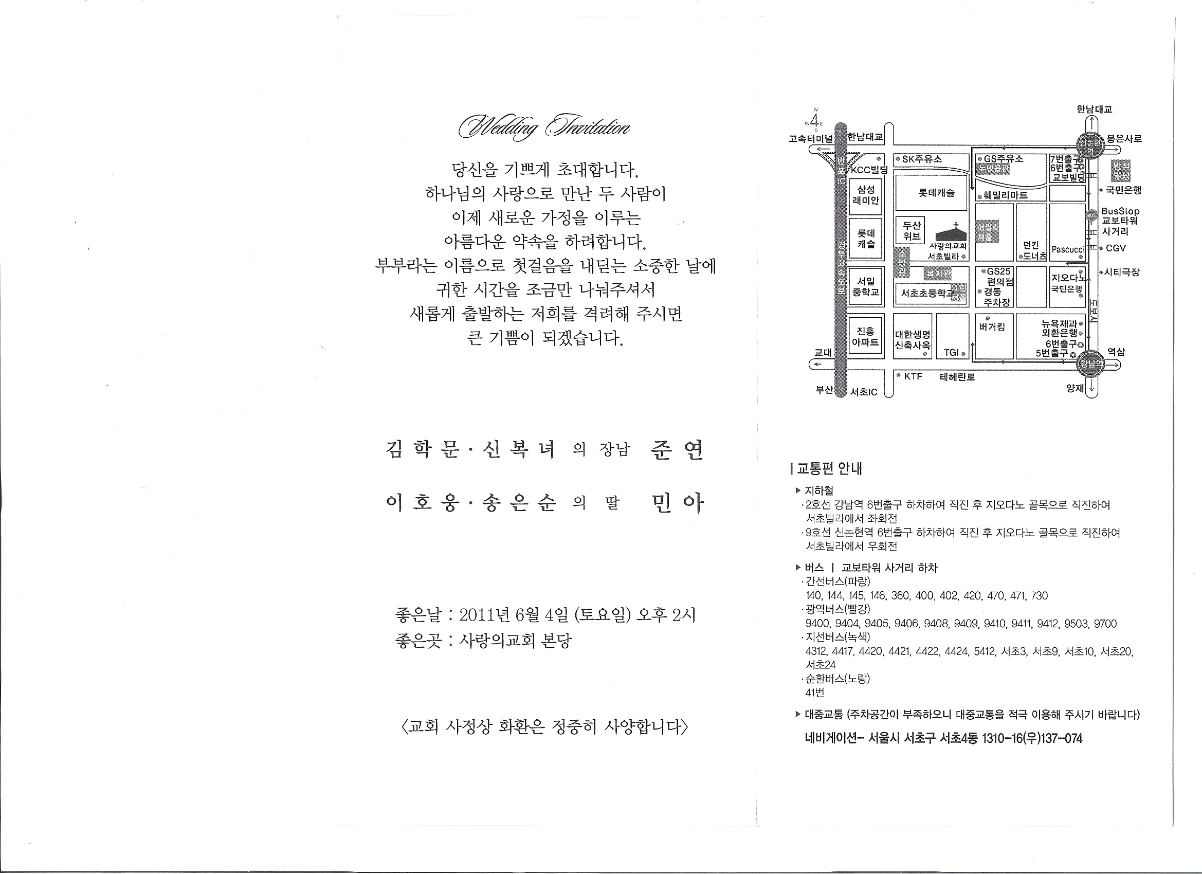 우리학회 정회원이신 단국대학교 김학문 교수님의 장남 결혼식이 아래와 같이 있어 안내해 드립니다.일 시 : 2011년 6월 4일 (토) 오후2시장 소 : 사랑의교회 본당(서울 서초동)* 교회 사정상 화환은 정중히 사양합니다. * 첨부파일 : 청첩장