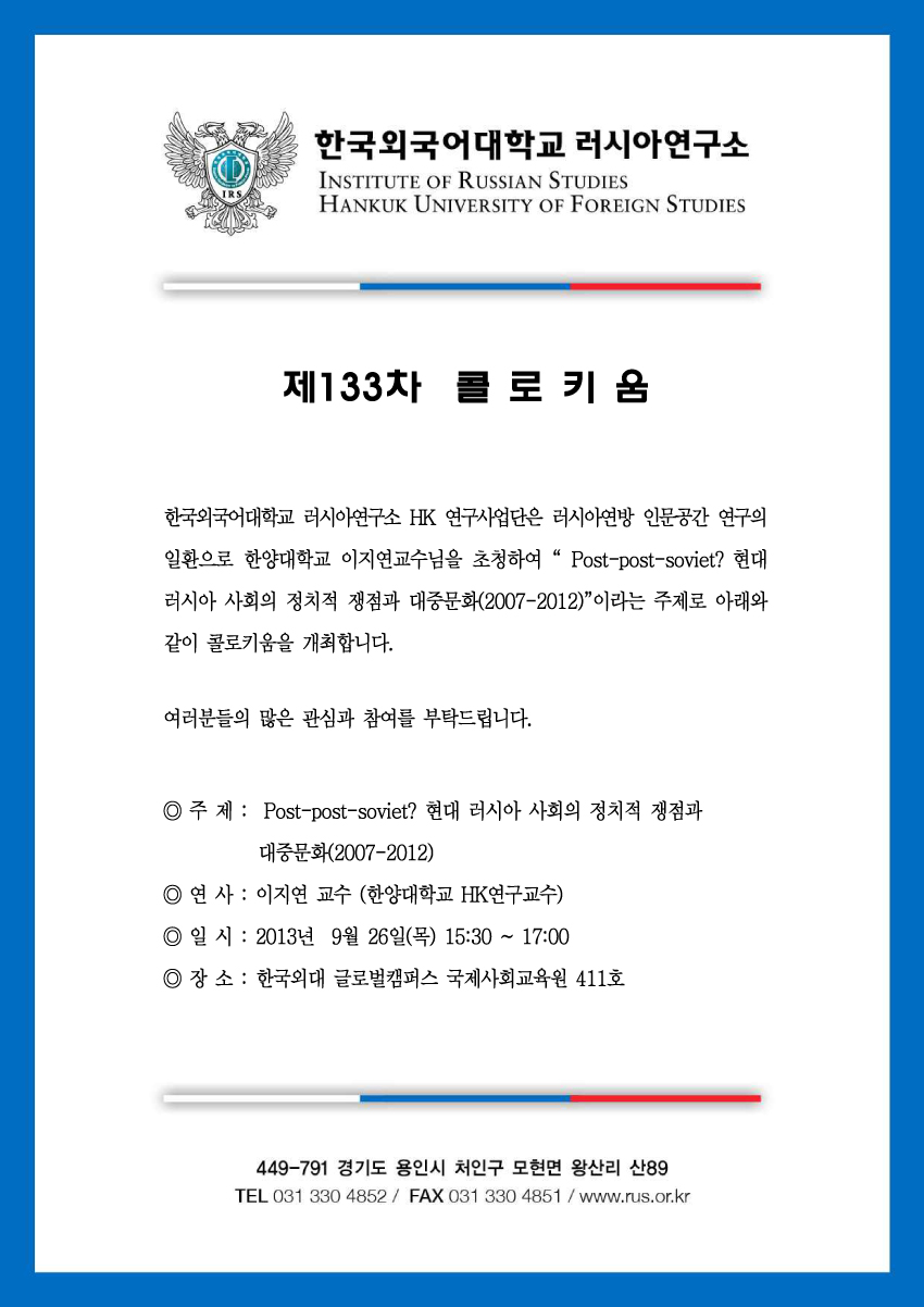 제133차 Post-post-soviet? 현대 러시아 사회의 정치적 쟁점과 대중문화(2007-2012)