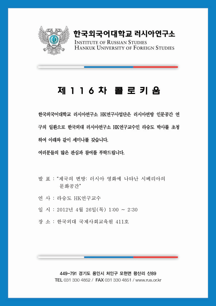 제116차 제국의 변방: 러시아 영화에 나타난 시베리아의 문화공간