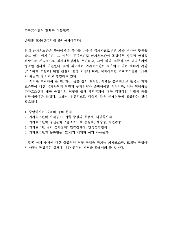 제68차 오늘날 카자흐스탄의 발전현황과 한국과의 관계