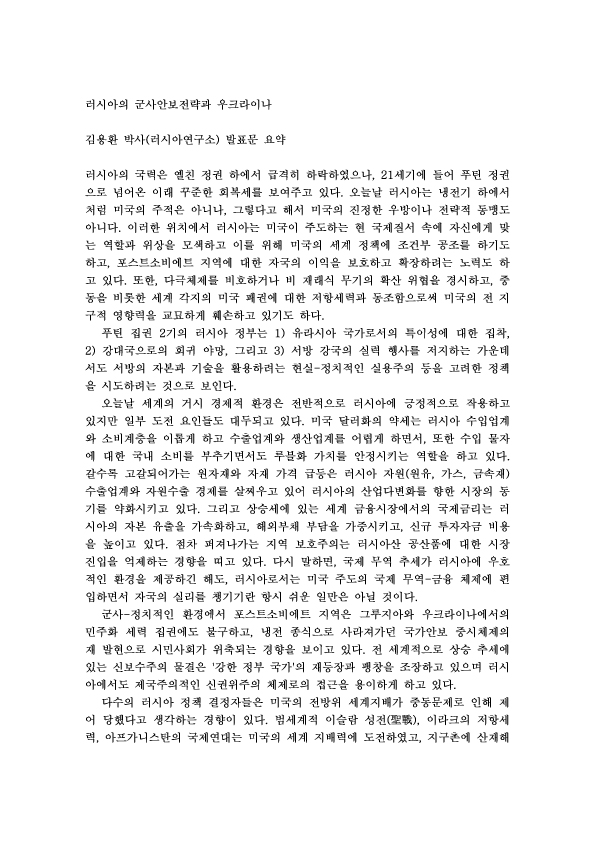제66차 러시아의 군사안보전략과 우크라이나 외 1
