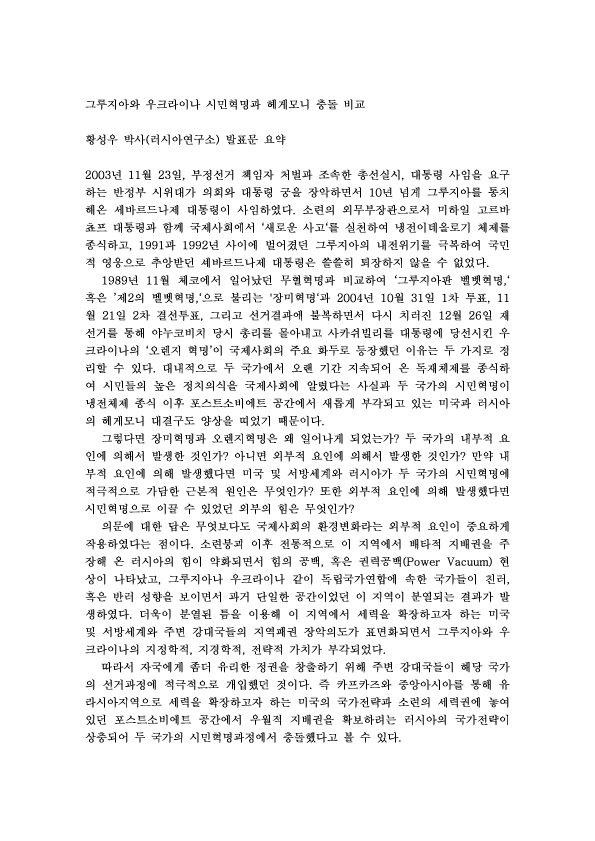제65차 그루지아와 우크라이나 시민혁명과 헤게모니 충돌 비교 외 1