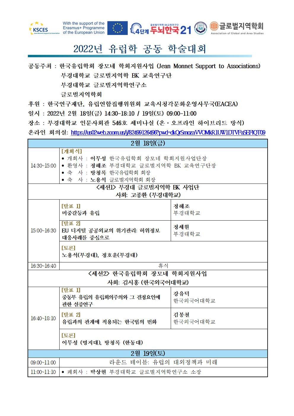[2022.2.18] 한국유럽학회-부경대 글로벌지역학 연구소-글로벌 지역학회 공동학술대회 개최 안내