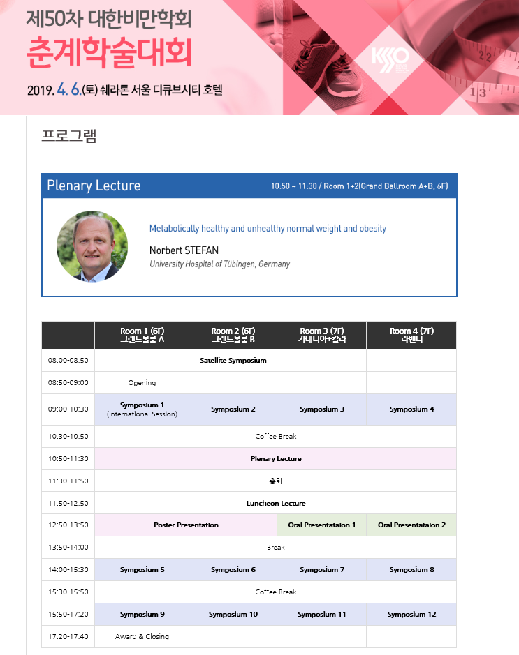 대한비만학회에서 제50차 춘계학술대회를 아래와 같이 개최합니다.