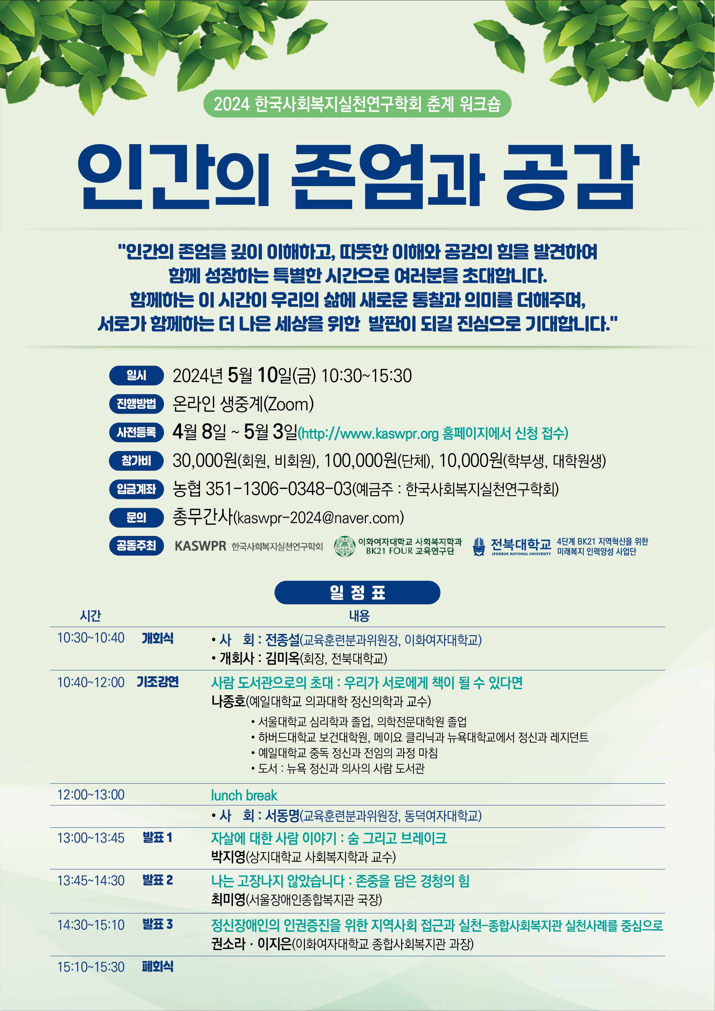 행 사 명 : 2024 한국사회복지실천연구학회 춘계 워크숍