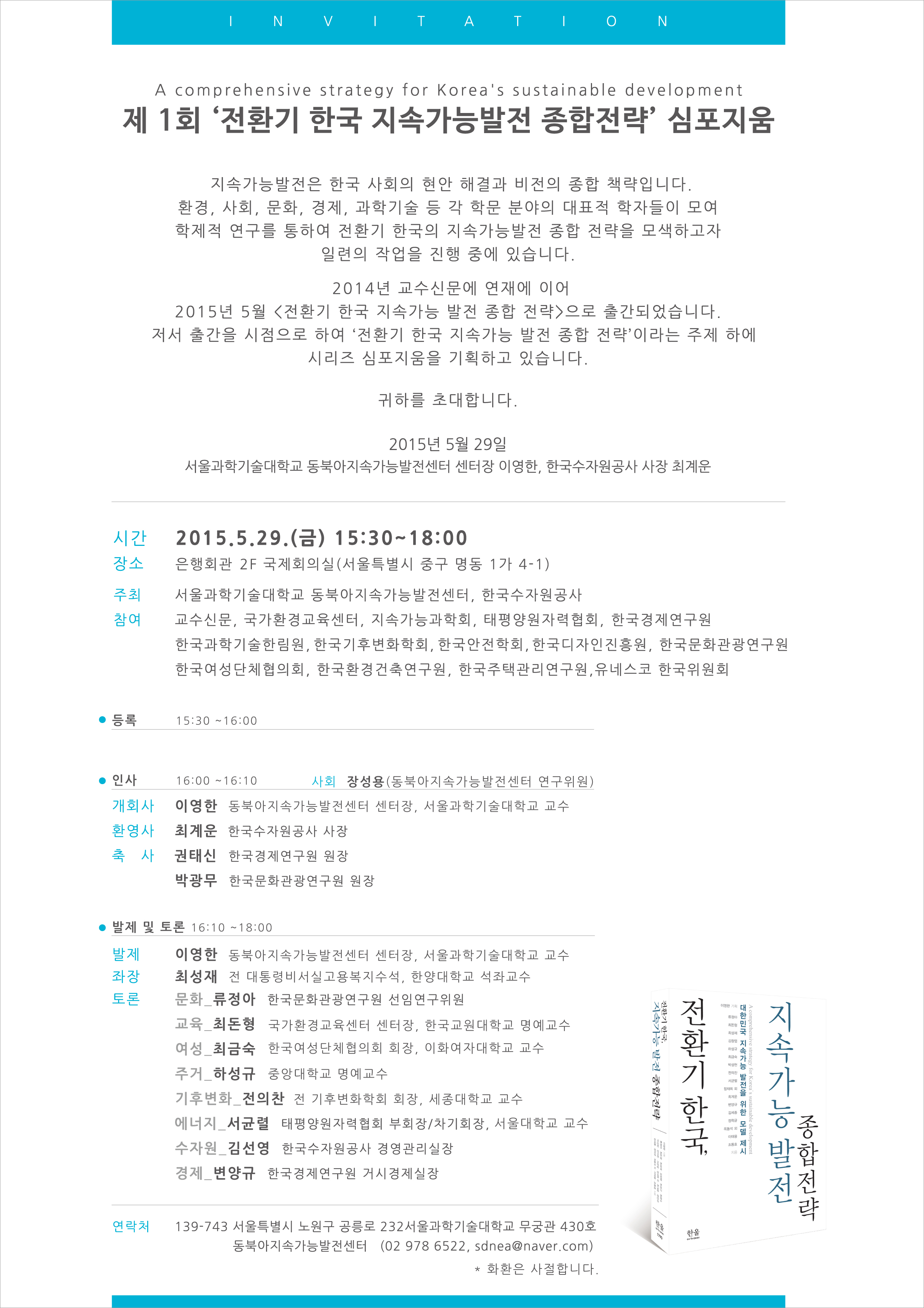 제 1회 <전환기 한국 지속가능발전 종합전략> 심포지움에 초대합니다.