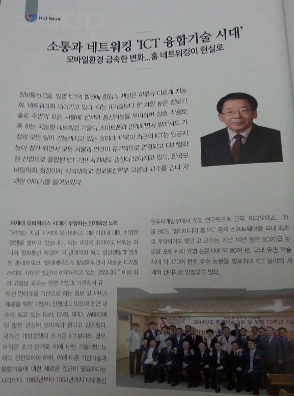 백석대학교 고응남교수(부회장) KOREA잡지 2014년 10월호 "ICT융합기술 시대"소개