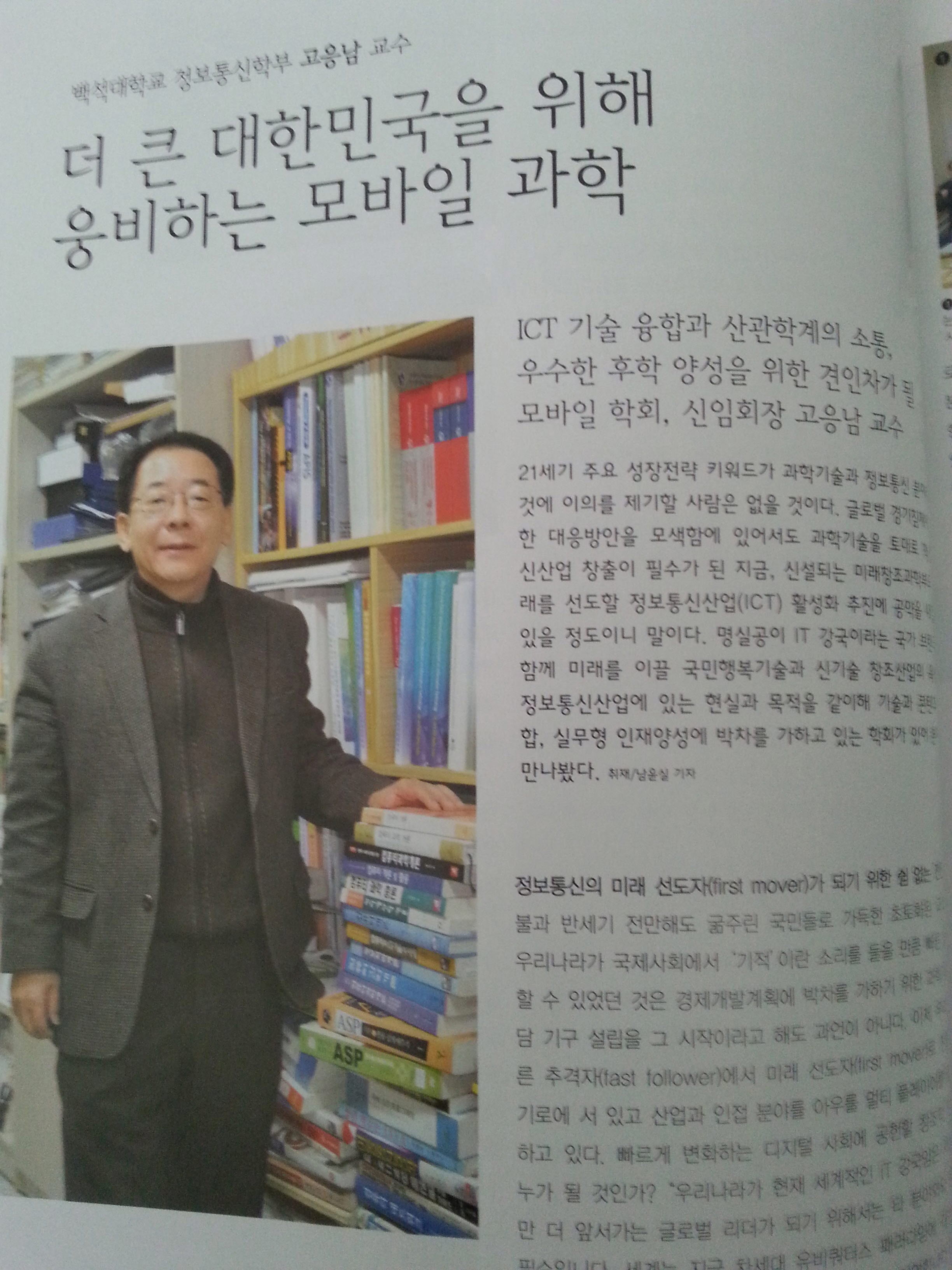 백석대학교 고응남교수님(이사)께서 Issue MAKER에 정보통신의 미래의 선두자로 소개되어 안내합니다.