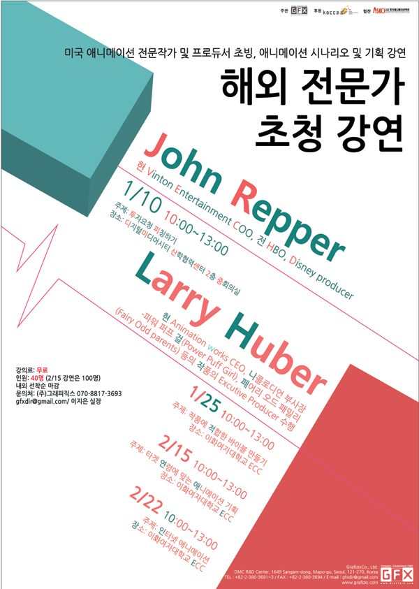 미국 애니메이션 전문작가 및 프로듀서 초빙, 애니메이션 시나리오 및 기획 강연 안내