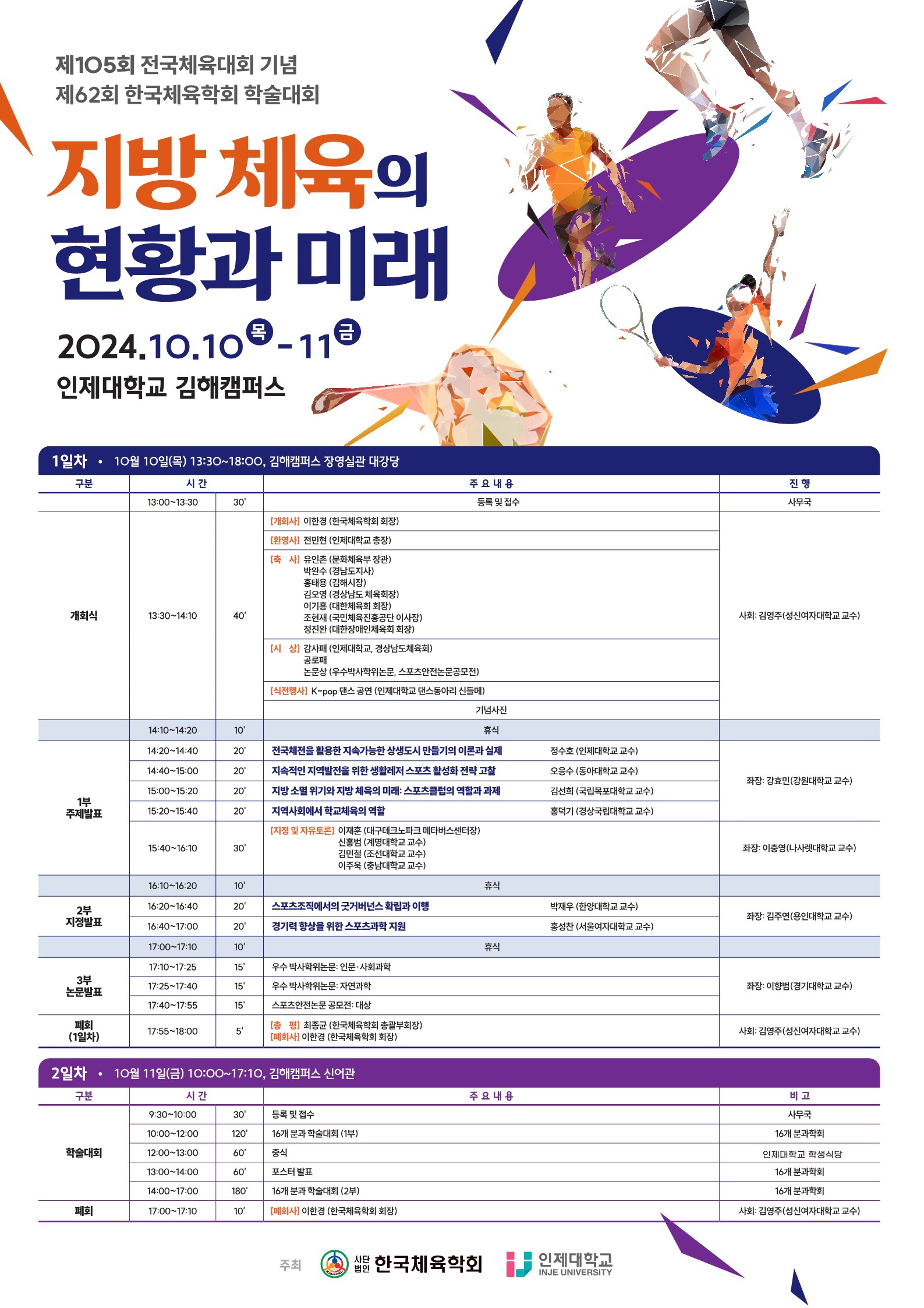 [한국체육학회] 2024년 제 105회 전국체육대회 기념 제62회 한국체육학회 학술대회 일정안내