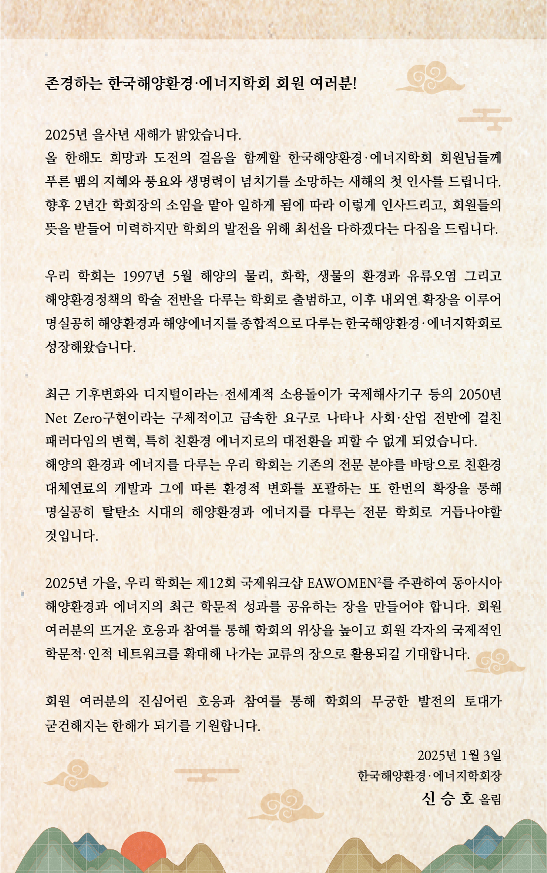 [공지] KOSMEE 제15대 학회장(신승호) 취임사 및 신년 연하장