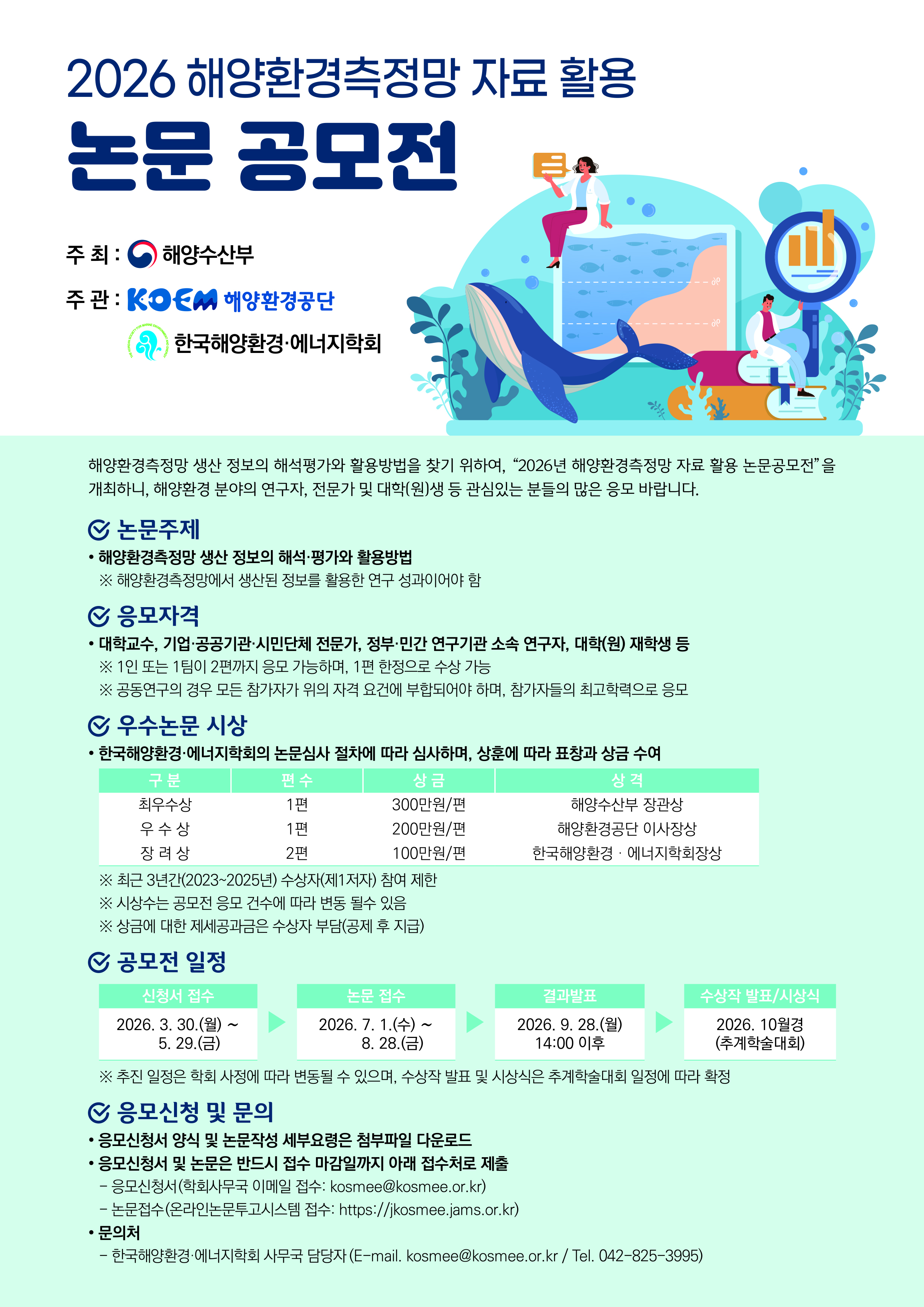 [공지] 2026년 해양환경측정망 자료 활용 논문 공모전 안내