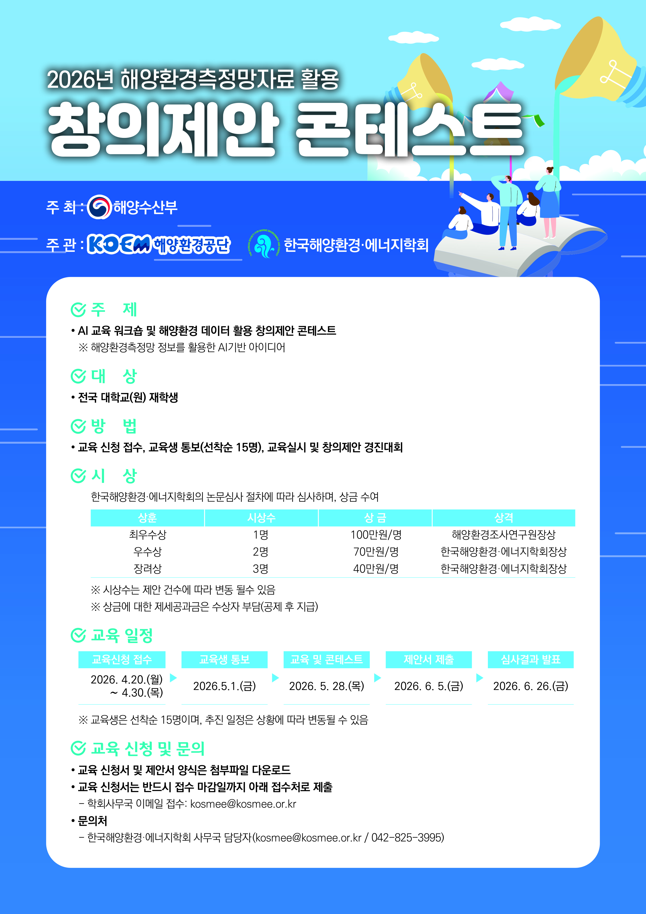 [공지] 2026년 해양환경측정망 자료 활용 창의제안 콘테스트 개최 안내