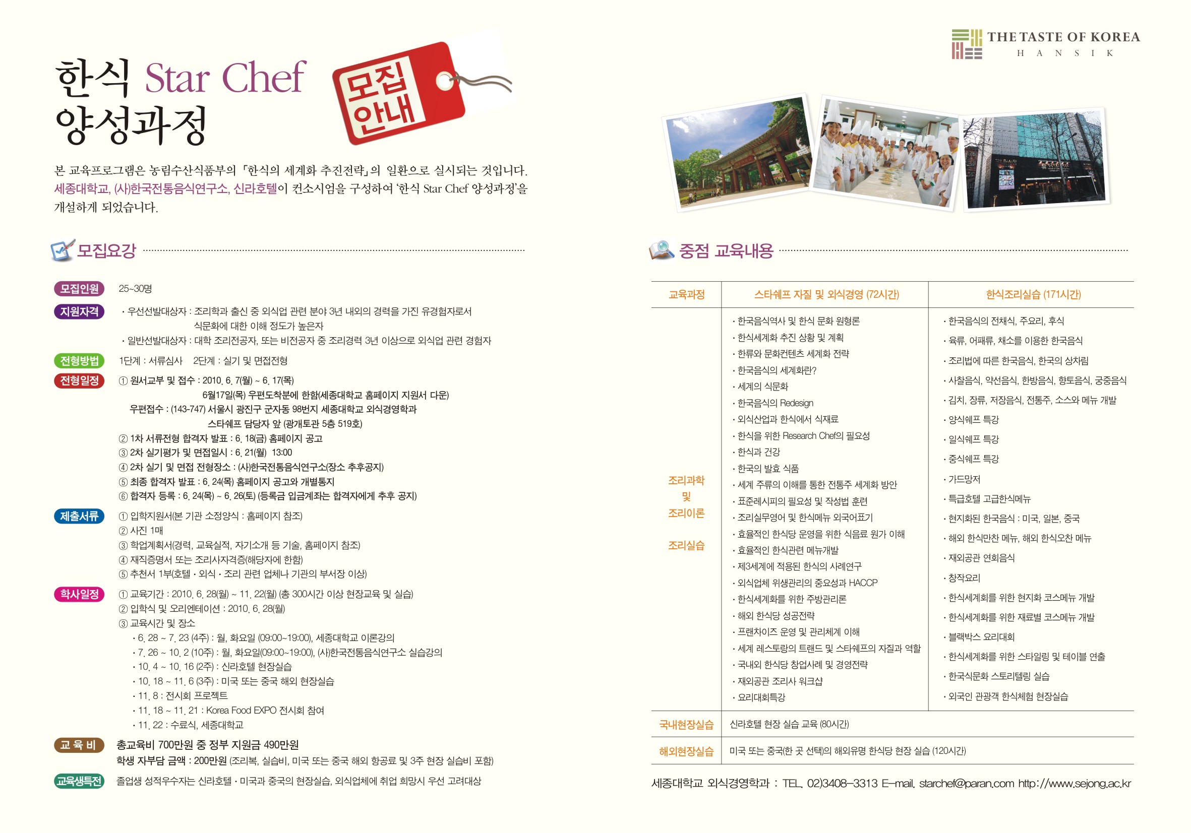 본 교육프로그램은 농림수산식품부의 「한식의 세계화 추진전략」의 일환으로 실시되는 것입니다. 세종대