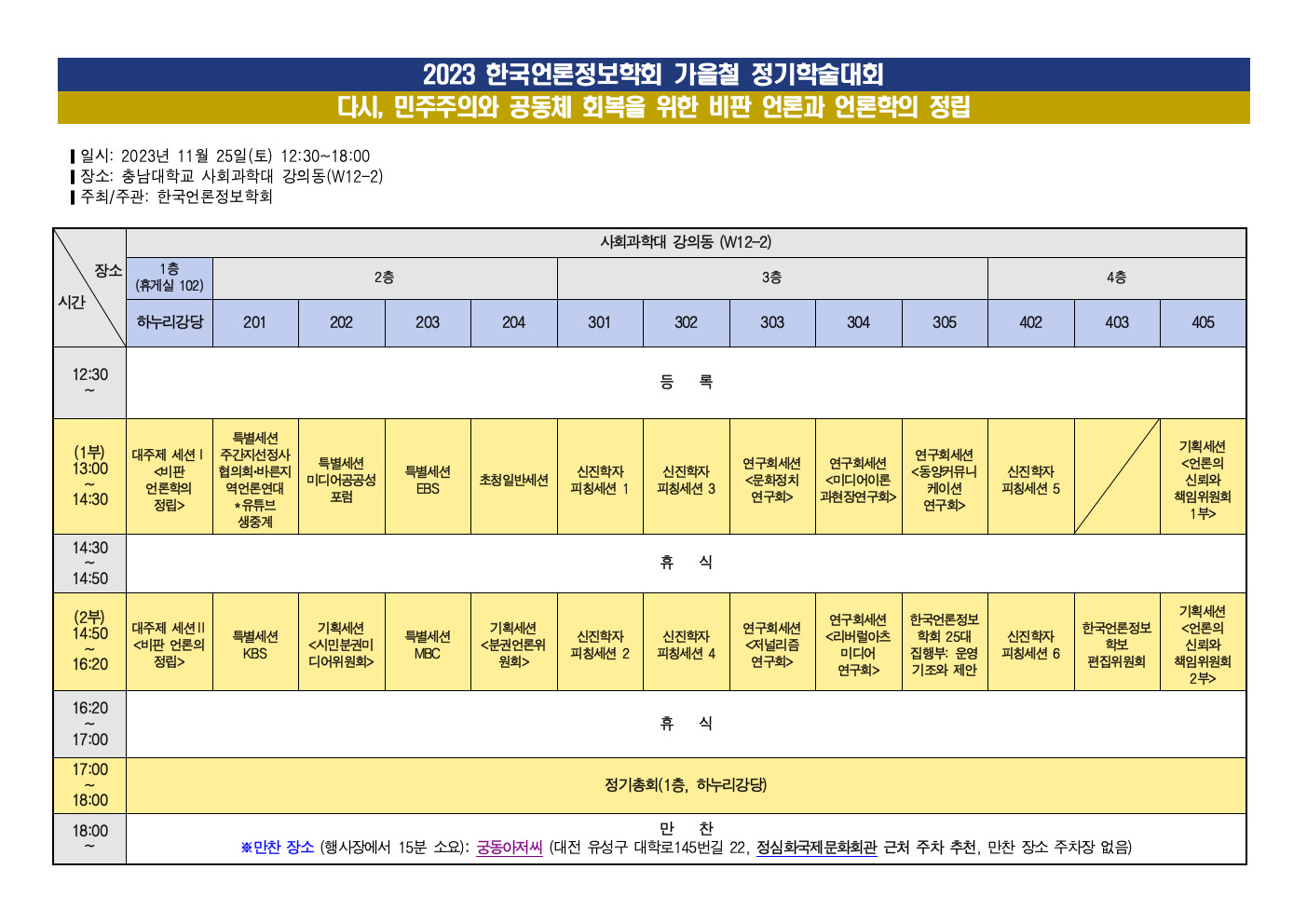 가을철 정기학술대회 (최종) 세션표 안내 (업데이트 : 2023. 11. 23)