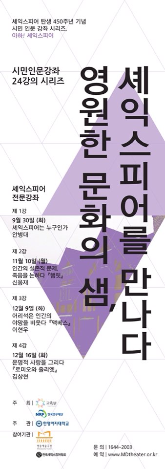 명동예술극장 셰익스피어 시민인문강화 제2강 안내 포스터