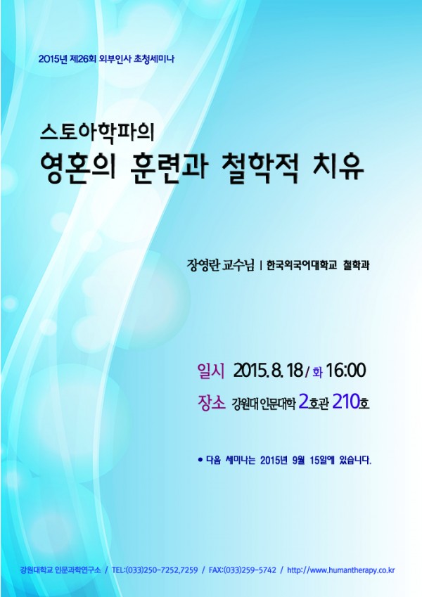 [강원대] 인문치료사업단 제26회 초청세미나 안내