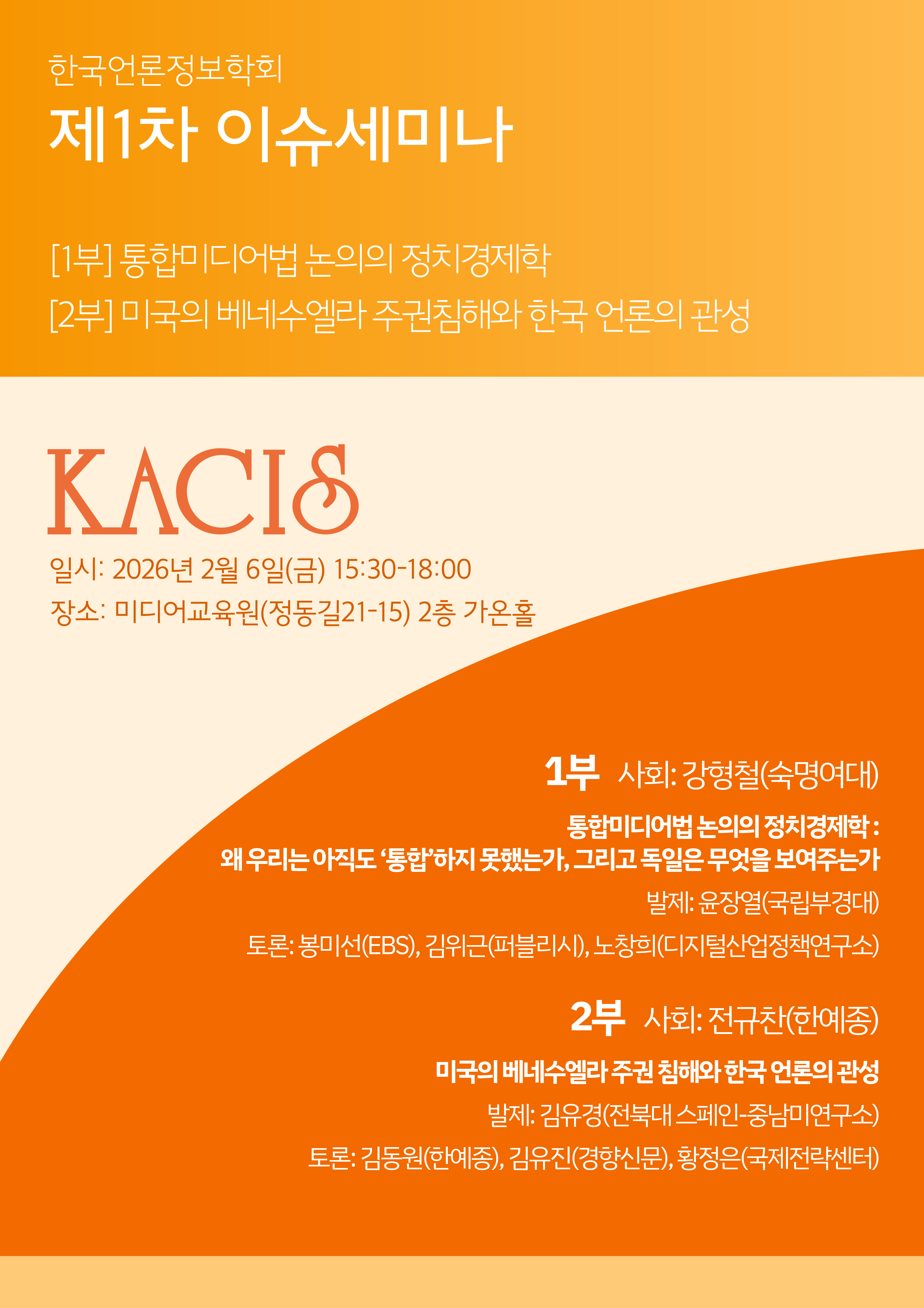 2. 한국언론정보학회는 2월 6일(금)에 2026년 제1차 이슈세미나를 개최합니다. 회원 여러분의 많은 관심과 참여를 부탁드립니다.