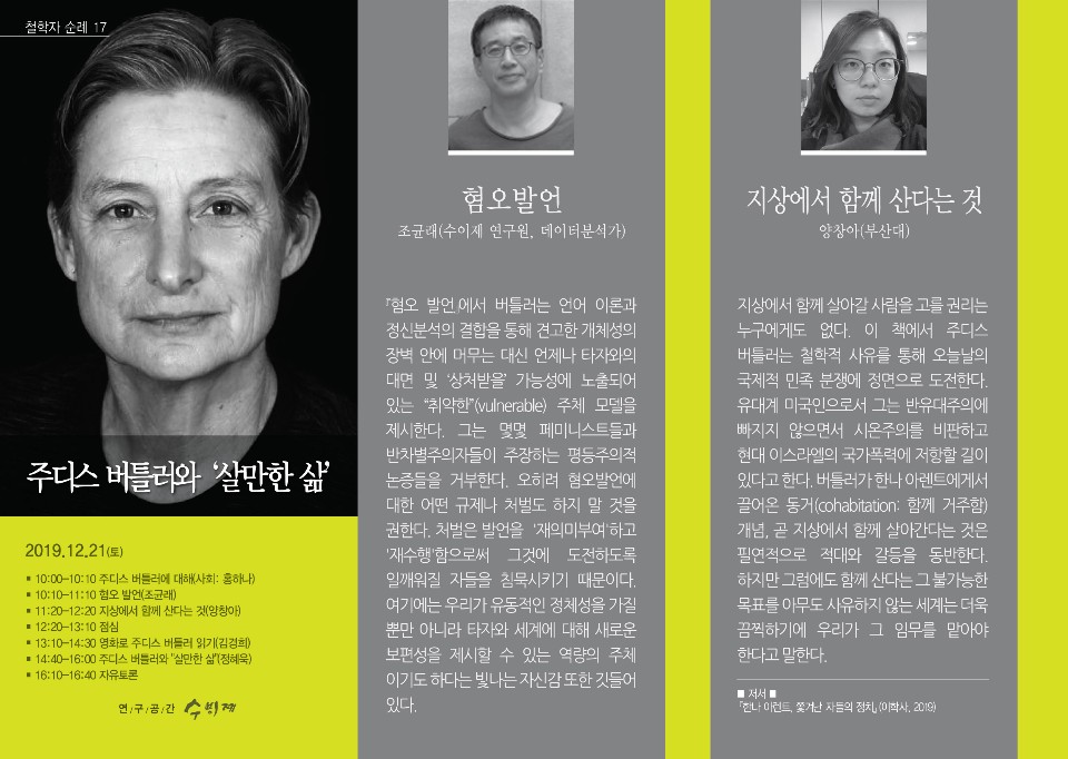 2019년 철학자의 순례 : 주디스 버틀러와 \'살만한 삶\'