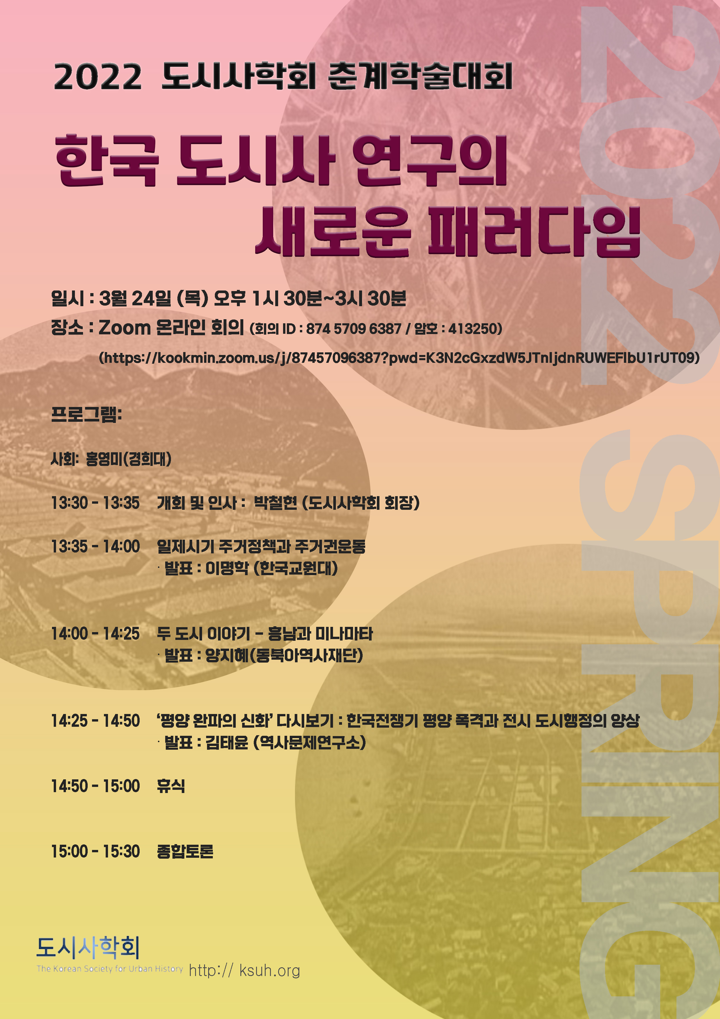 2022.03.24.(목) 도시사학회 춘계 학술대회 개최안내(온라인 진행)