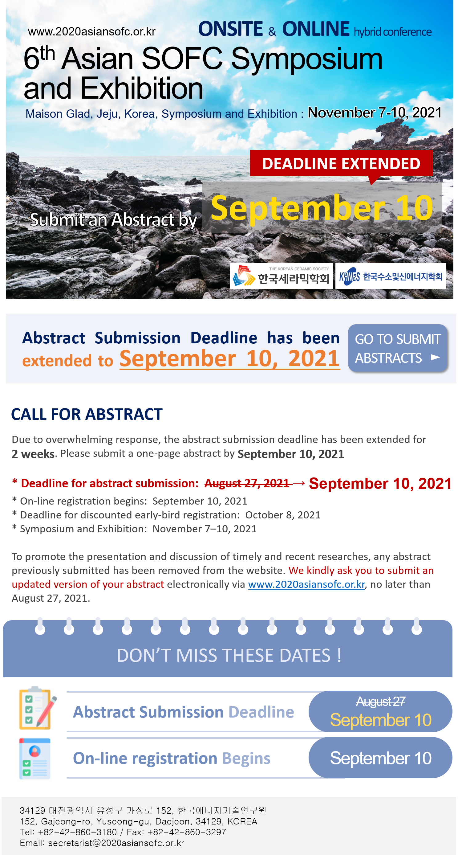 [6th Asian SOFC Symposium and Exhibition] FINAL CALL FOR ABSTRACTS - Dont Miss the last chance to submit your abstract