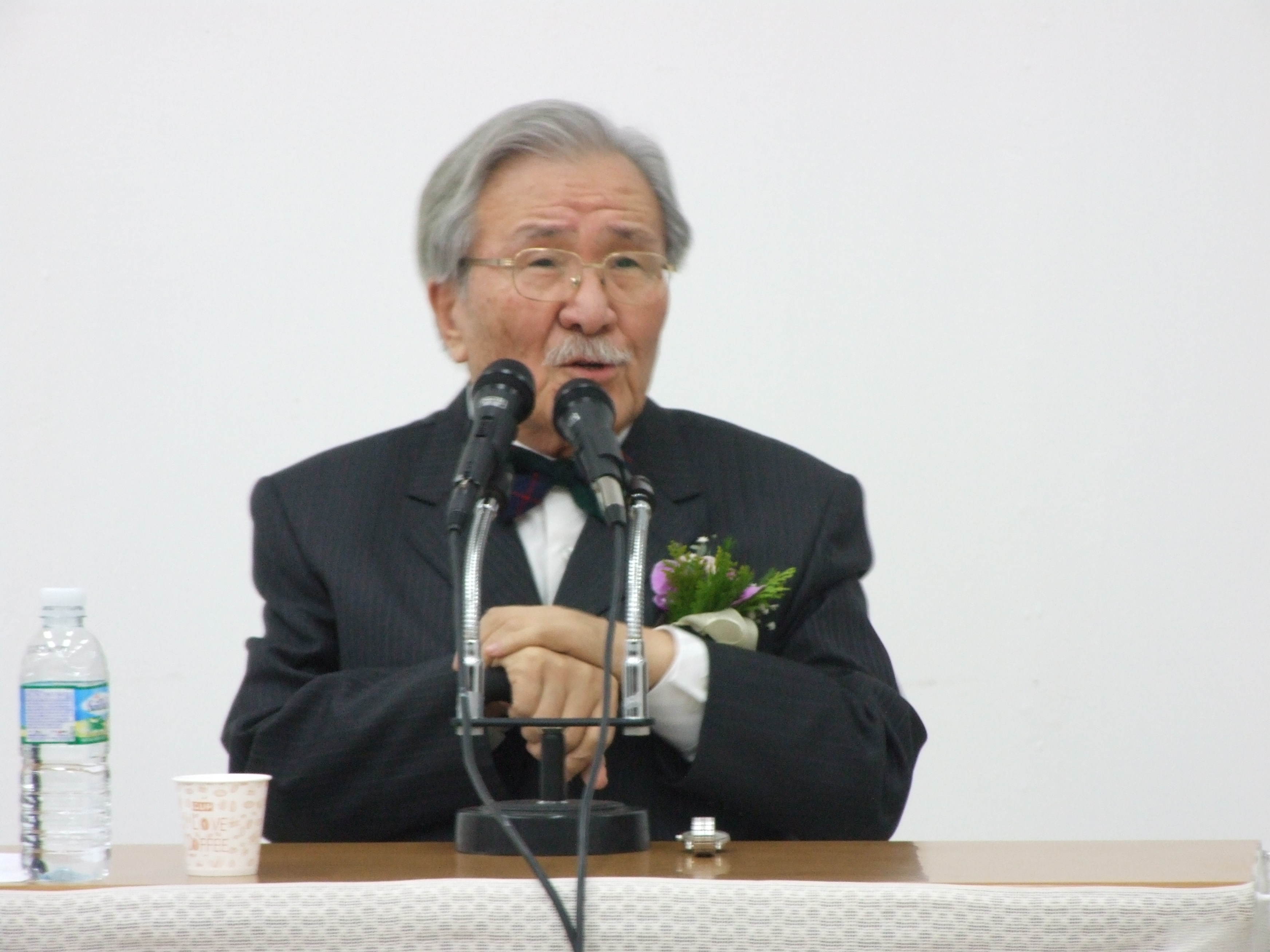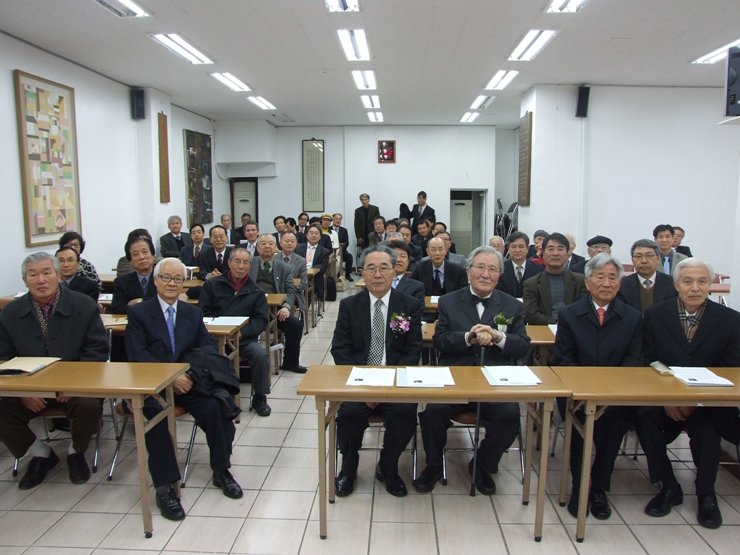 ▲ 2011년도 한글학회 정기 회원총회 기념으로 특강을 하고 있는 김동길 선생(위 사진)과 특강이 끝난 뒤 참석자들과 함께 자리한 모습(아래 사진).