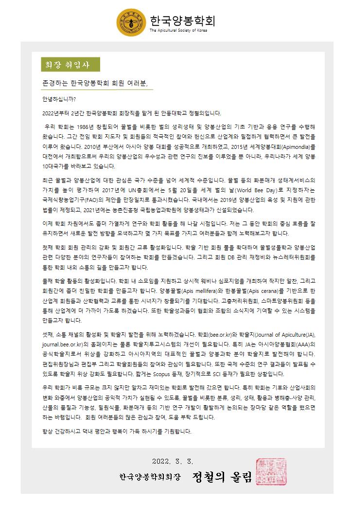[초록마감연장안내] 2022년 제38차 한국양봉학회 동계학술대회 및 총회 개최 알림