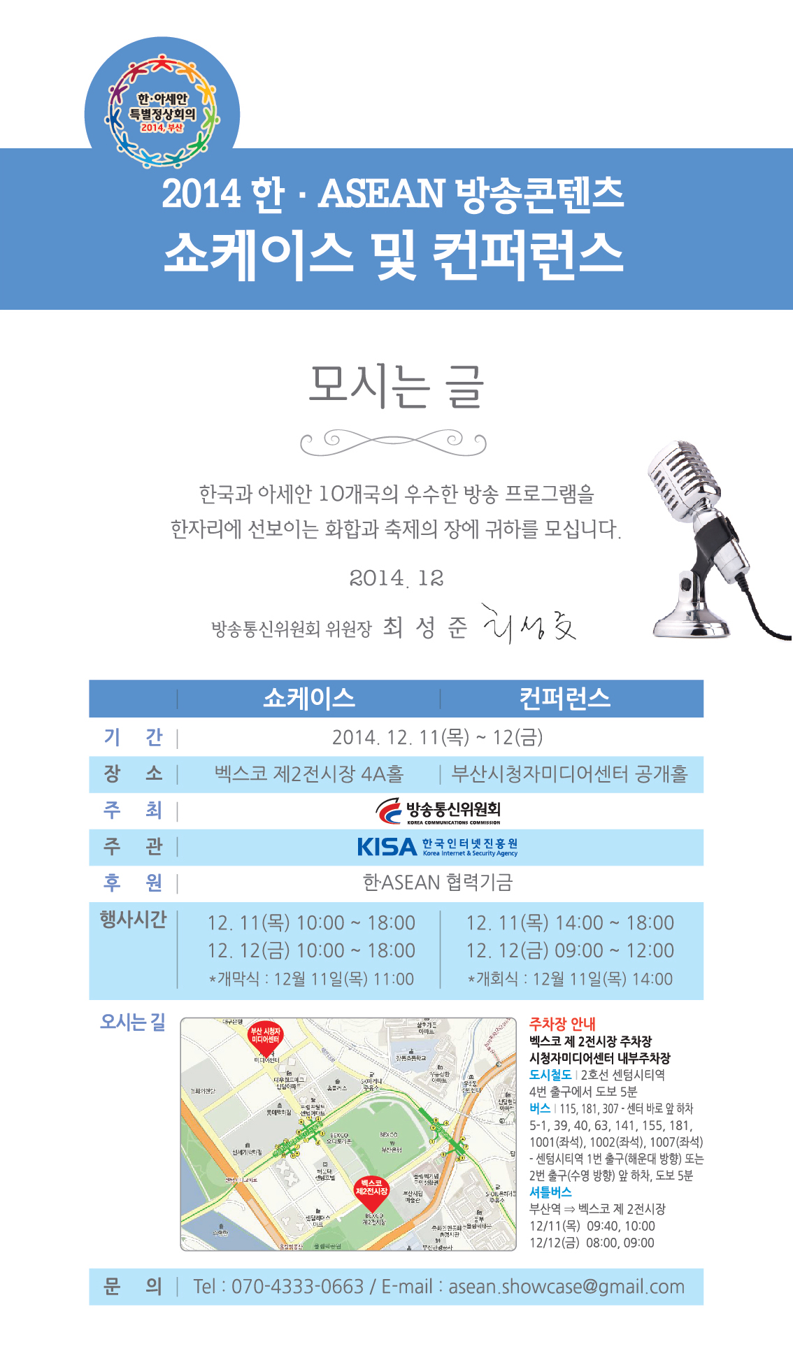 5) 문의: 070-4333-0663, asean.showcase@gmail.com