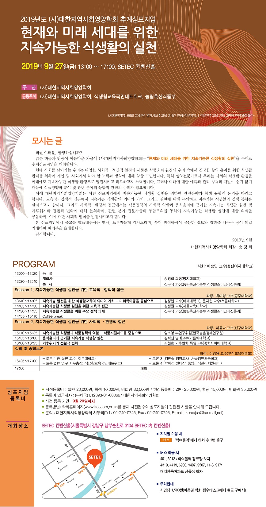 지역사회영양학회 2019년도 추계심포지엄 개최