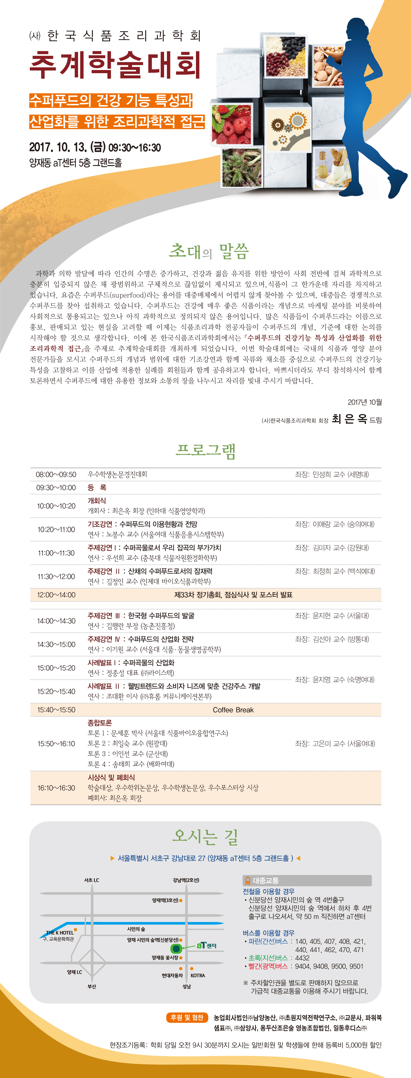 · 일시 및 장소: 2017년 10월 13일(금) 9:30~16:30, 양재동 aT센터 그랜드홀