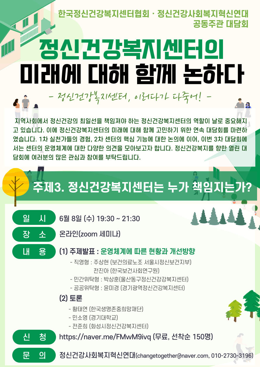 ※ 문의정신건강사회복지혁신연대(changetogether@naver.com, 010-2730-3196)