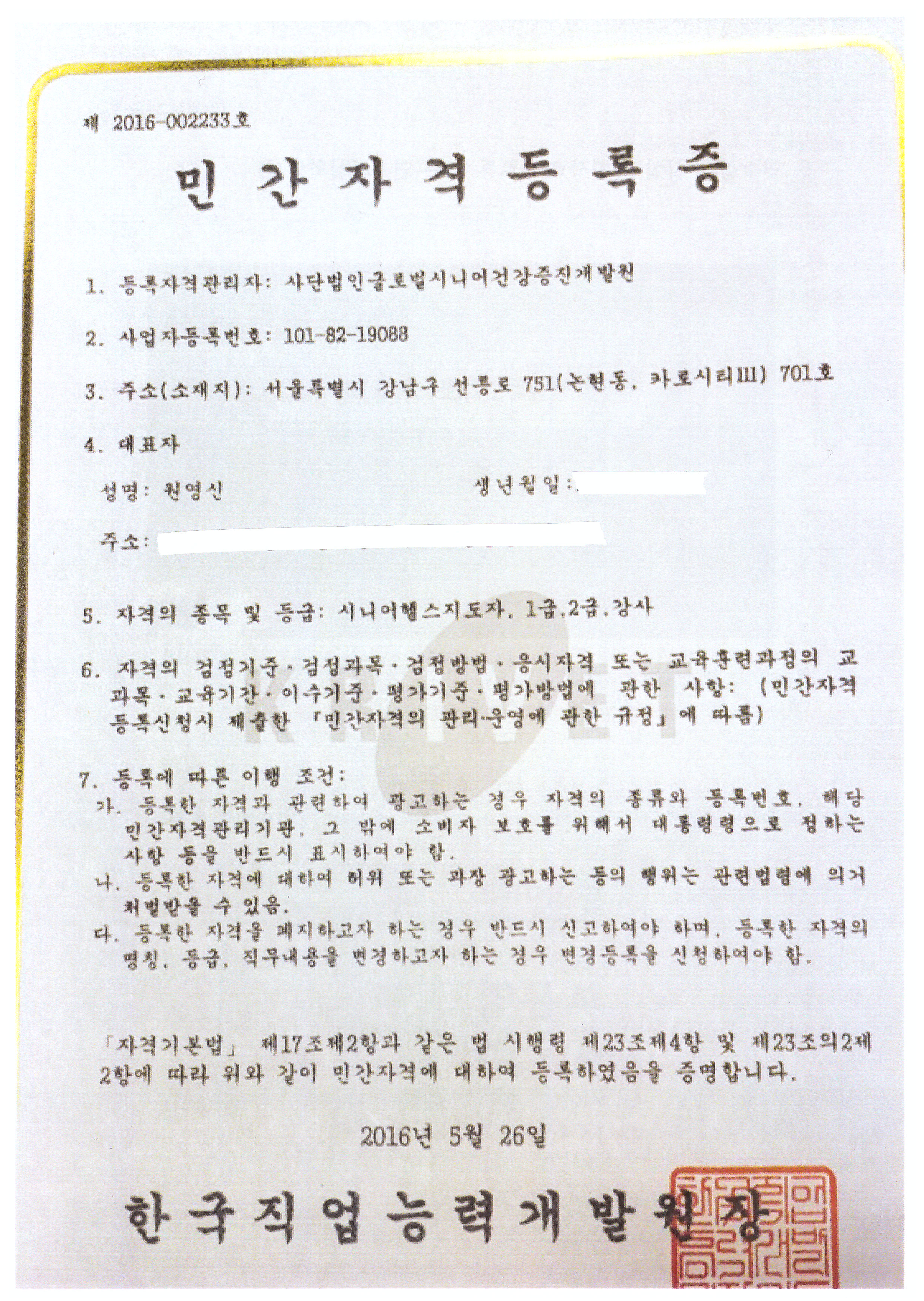 K-양생체조 지도자 과정(직업능력개발원 등록증)